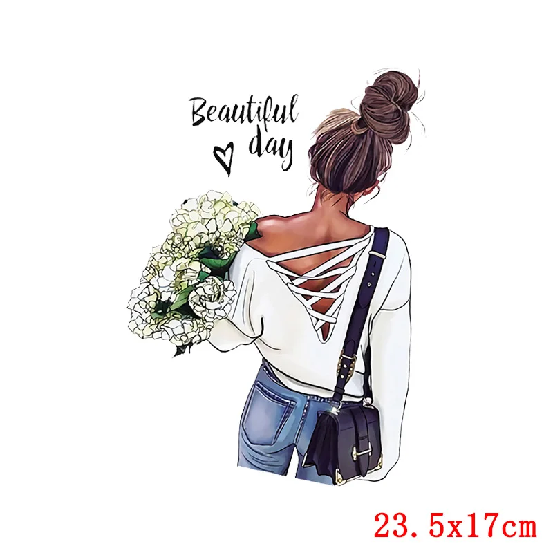 Термонаклейки для одежды для девочек, модные термотрансферные накле...