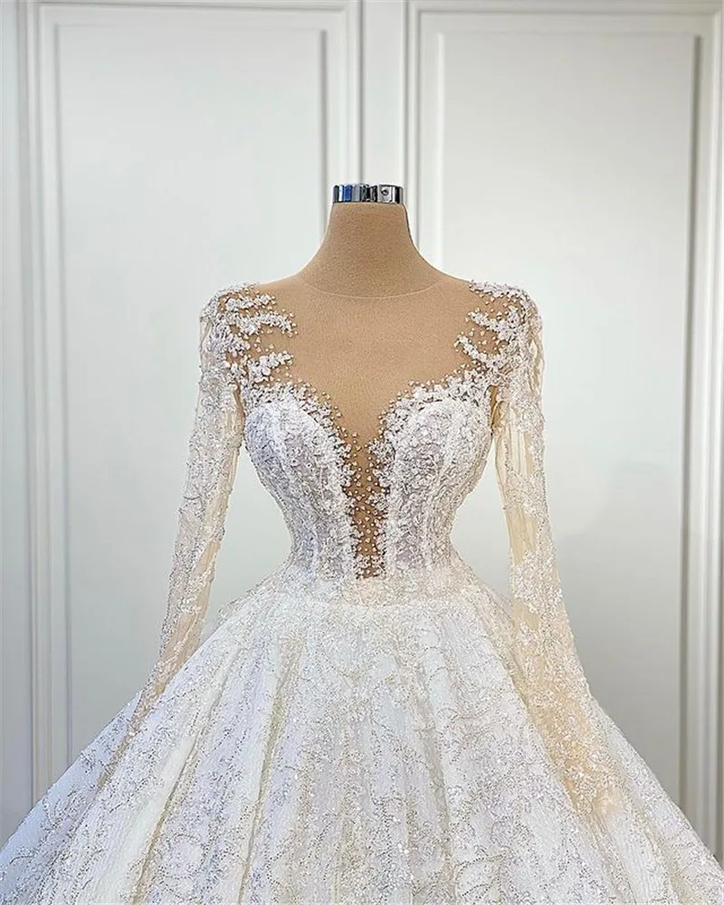 Роскошное кружевное бальное платье с блестками, свадебные платья 2021, халат De Mariage, романтический длинный рукав, Свадебные платья Vestido De Noiva