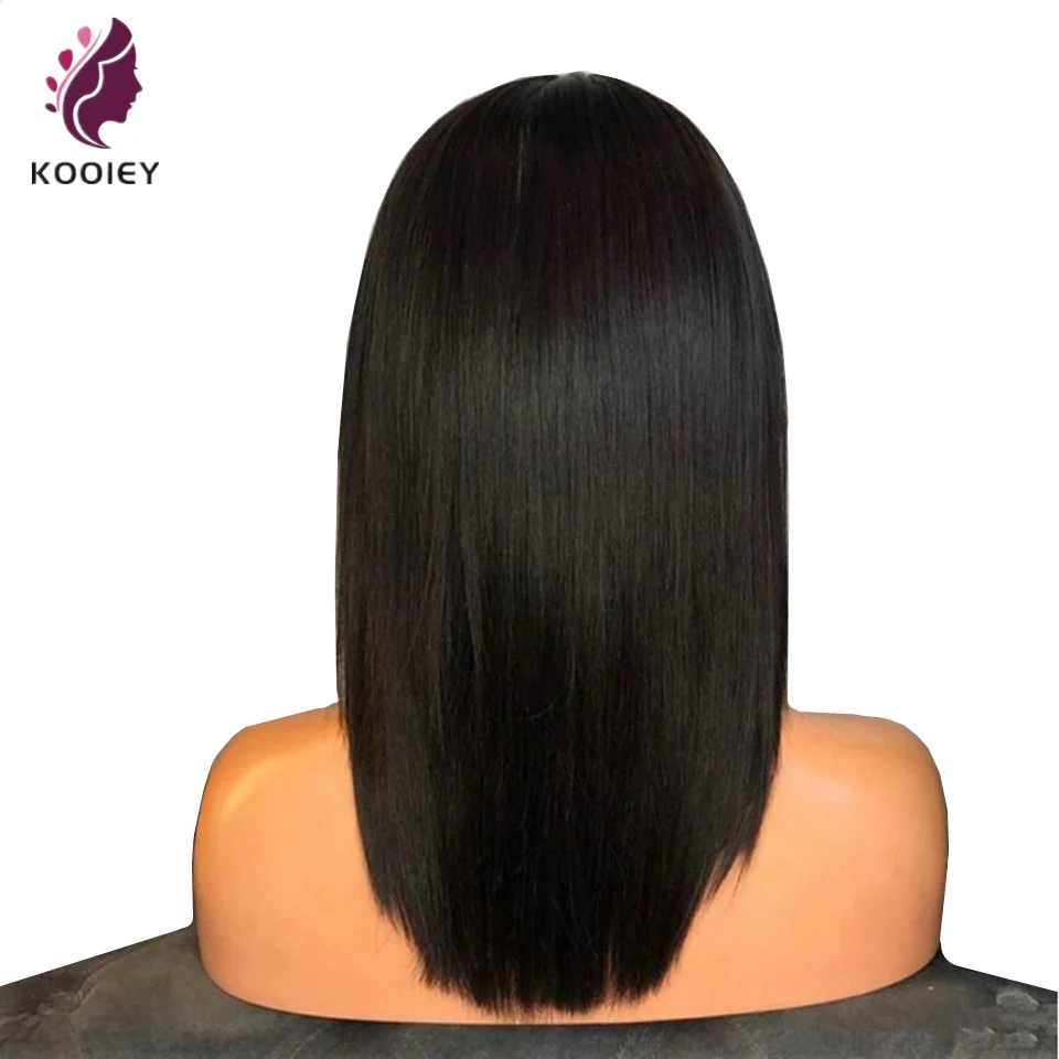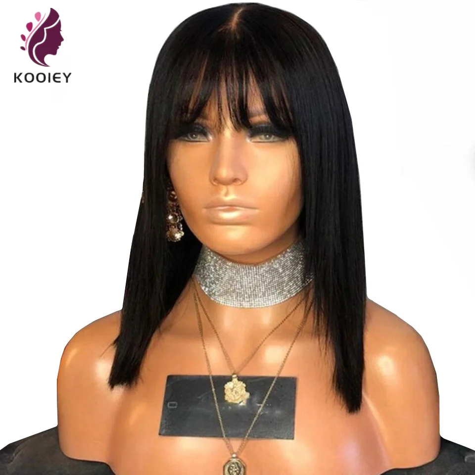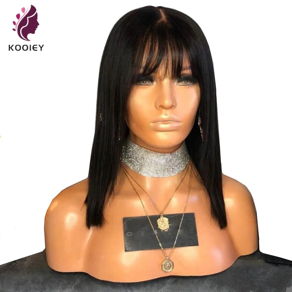 Парики короткие из человеческих волос с челкой, 13x 4 на сетке спереди, прямые бразильские волосы естественного цвета, 5x5, шелковые
