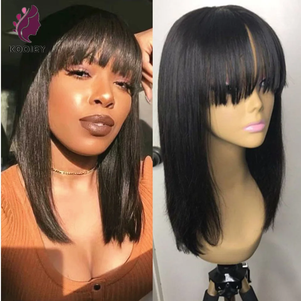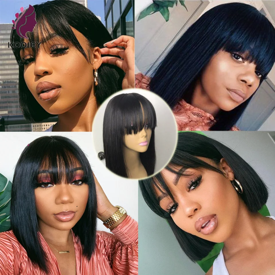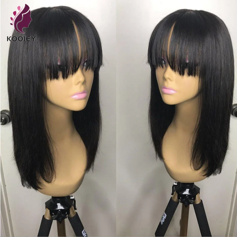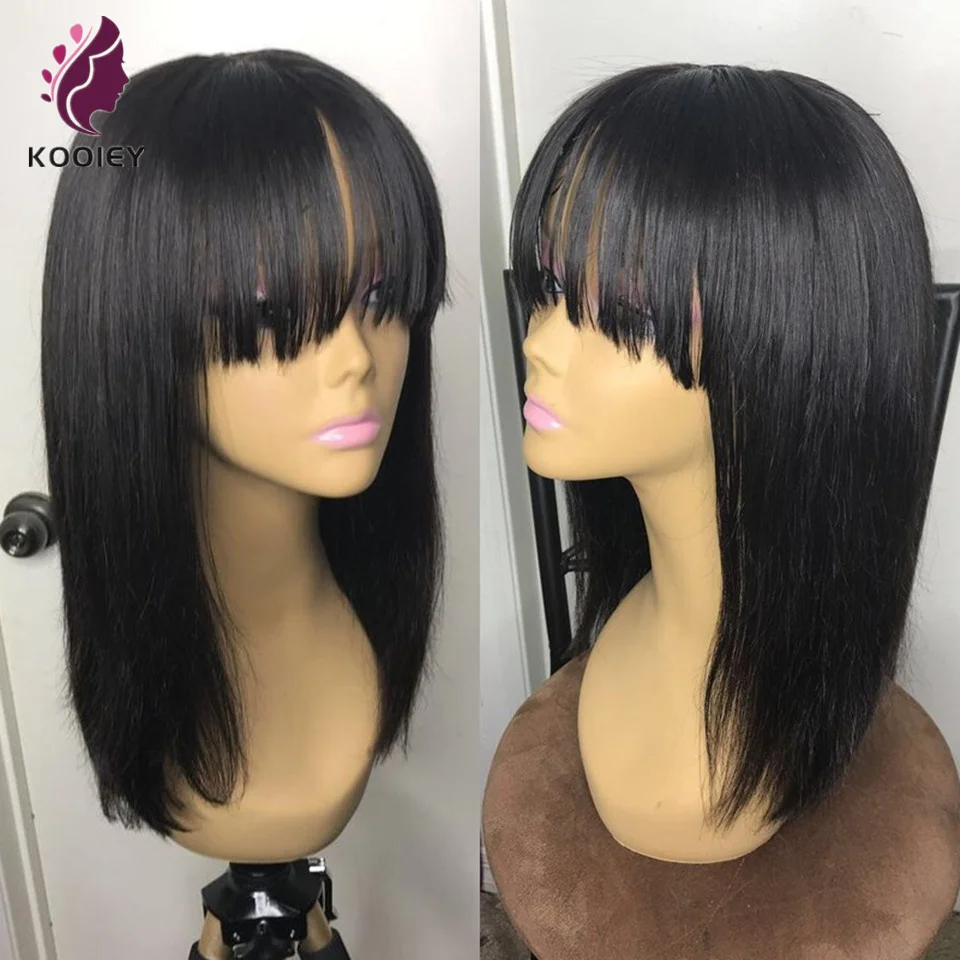 Короткие фронтальные парики на сетке 13x4 с челкой, бразильские натуральные волосы без повреждений, парик из 150% плотных человеческих волос на сетке спереди для женщин