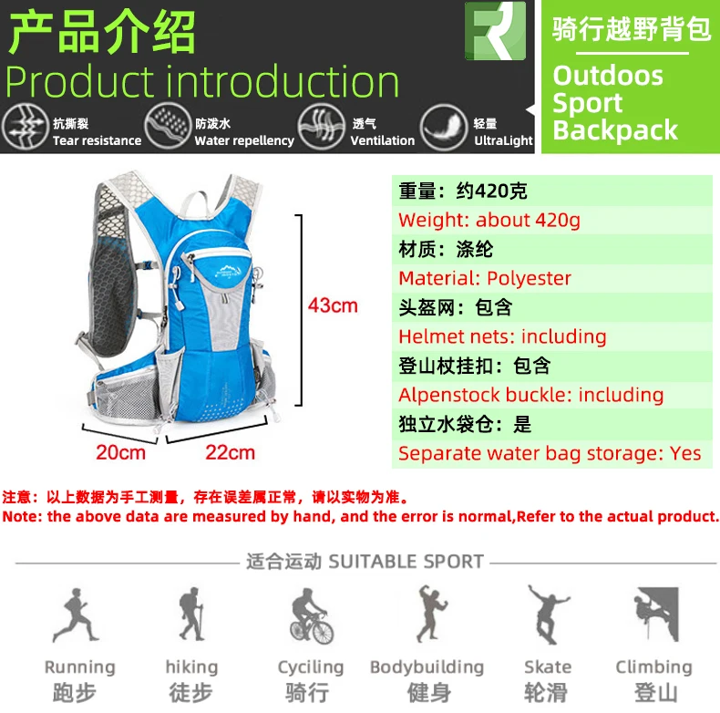 12L рюкзак для спорта на открытом воздухе, велоспорта, кемпинга, воды, хранения шлема, гидратации, ультралегкий рюкзак для пешего туризма, езды на велосипеде, рюкзак для мочевого пузыря