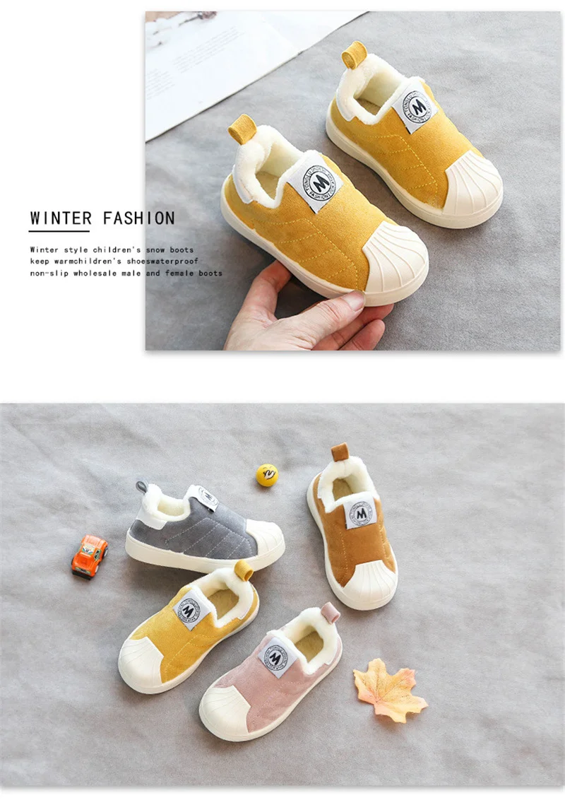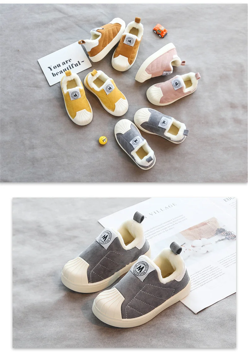 Зимние ботинки для девочек и мальчиков, детская обувь для малышей, Детская Хлопковая обувь, теплая плюшевая Уличная обувь для младенцев, нескользящая бархатная обувь