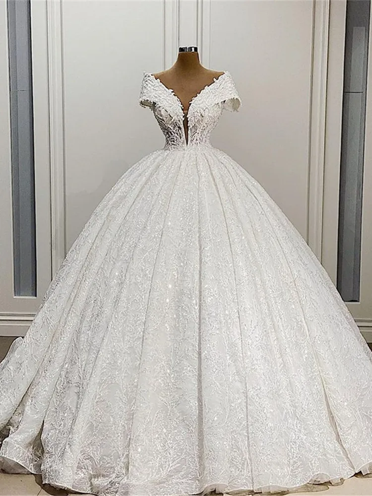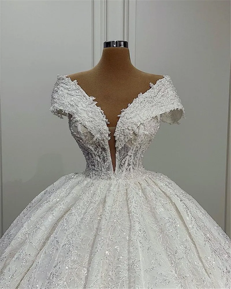 Элегантное бальное платье с кружевными бусинами и рукавами-крылышками, свадебные платья 2021, сексуальное свадебное платье с глубоким V-образным вырезом, свадебные платья, Vestido De Noiva