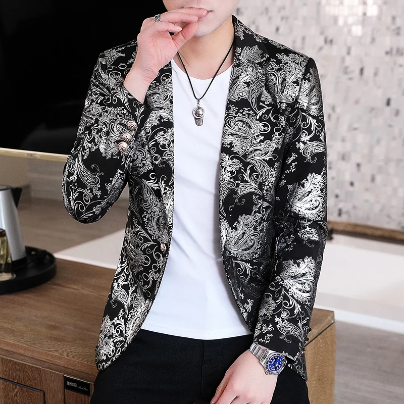 Новинка 2021, мужской Роскошный Блейзер, куртка с золотым цветочным...