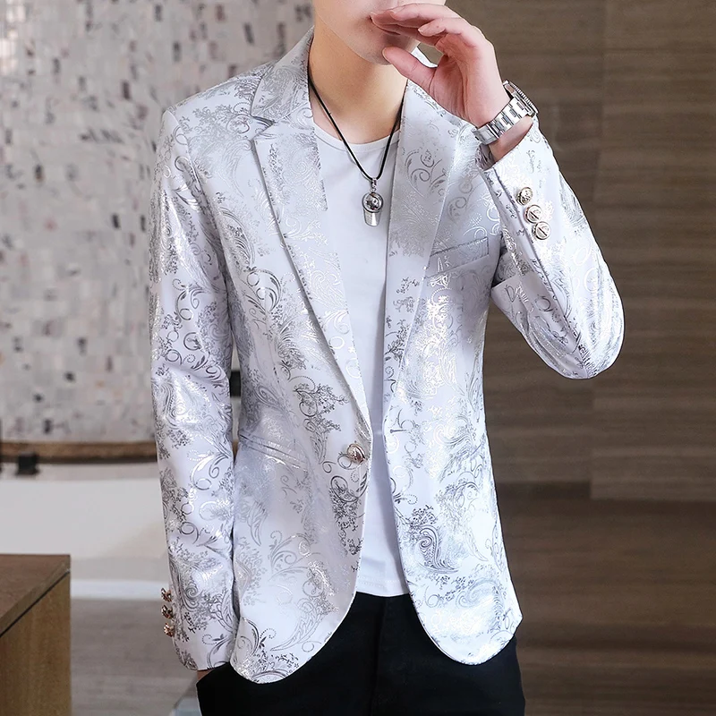 2021 Роскошные Бронзовые мужские блейзеры, сценический певец, смокинг, повседневный костюм, пиджак, свадебная деловая уличная одежда, светская куртка, Мужская одежда