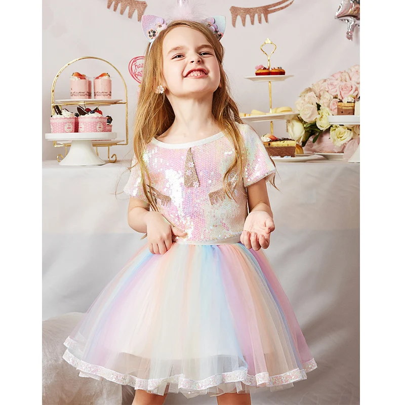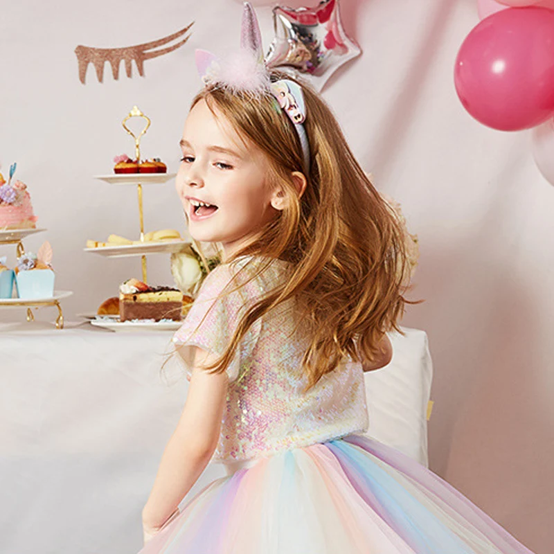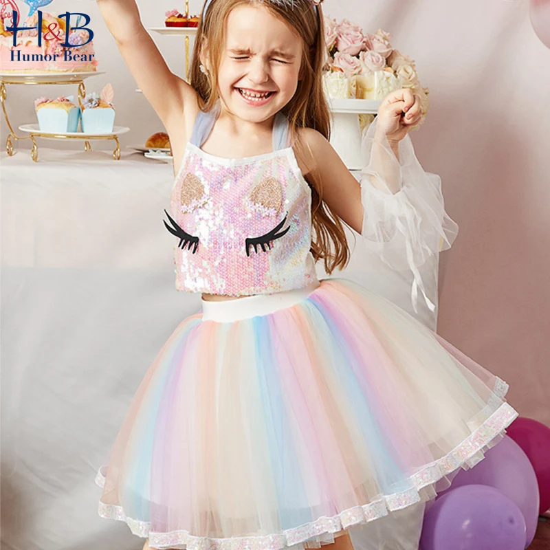 Комплект одежды Humor Bear для девочек, летний Яркий топ на бретельках с мультяшным рисунком + вечерние чатая вечерняя юбка с принтом, милая детская одежда из 2 предметов