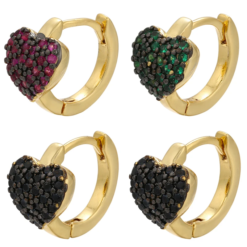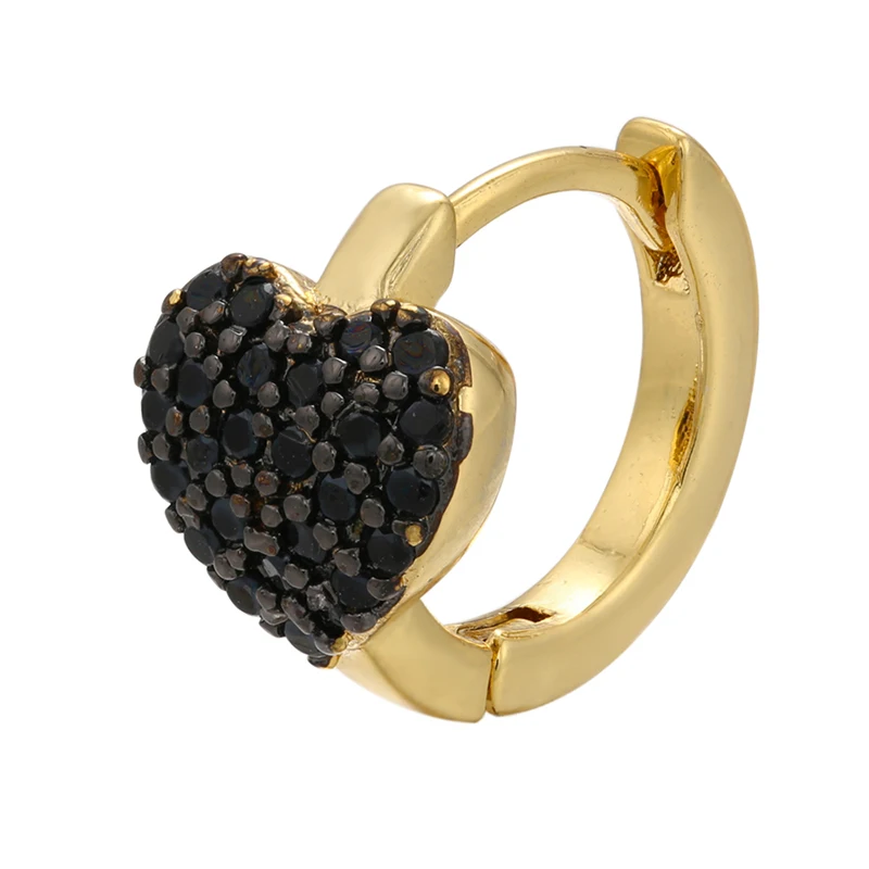 ZHUKOU 1 шт 2021 новые золотыеСеребристые цветные маленькие серьги-кольца с черным сердцем и кристаллами креативные популярные серьги женские ювелирные изделия VE345