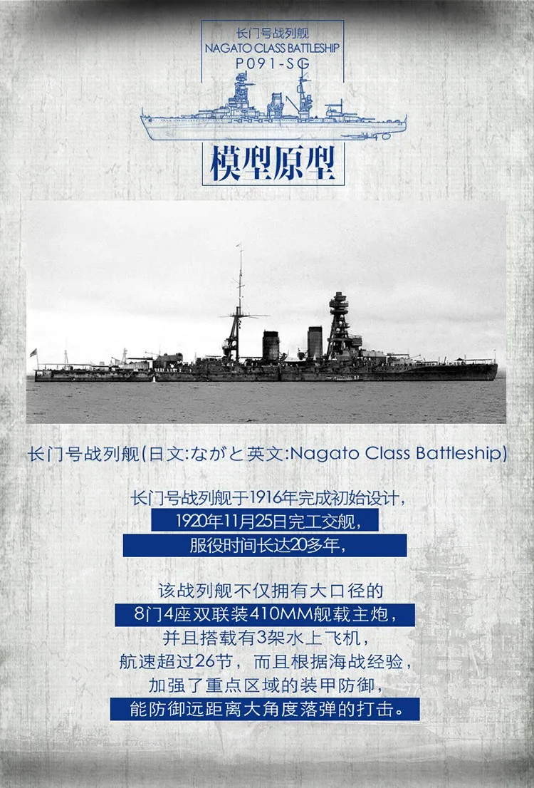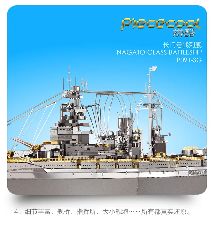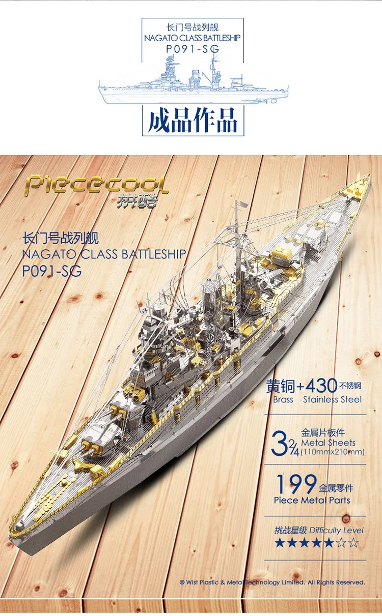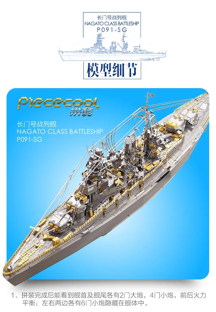 NAGATO класса броненосец P091-SG металлическая модель DIY лазерной ...