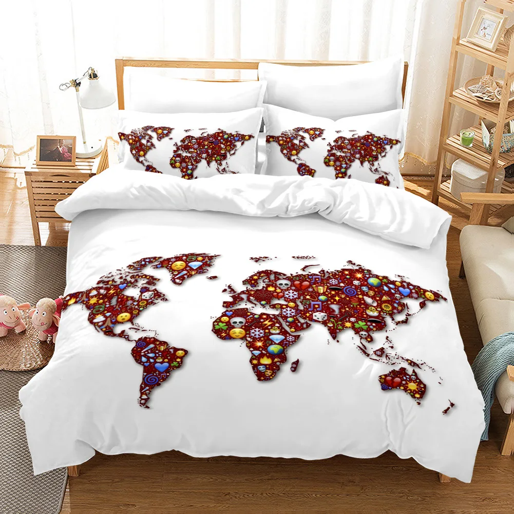 Комплект постельного белья с 3d-картой мира, пододеяльником и наволочкой
