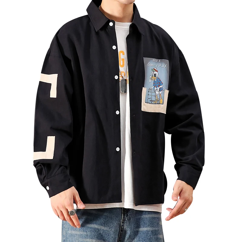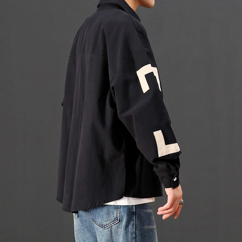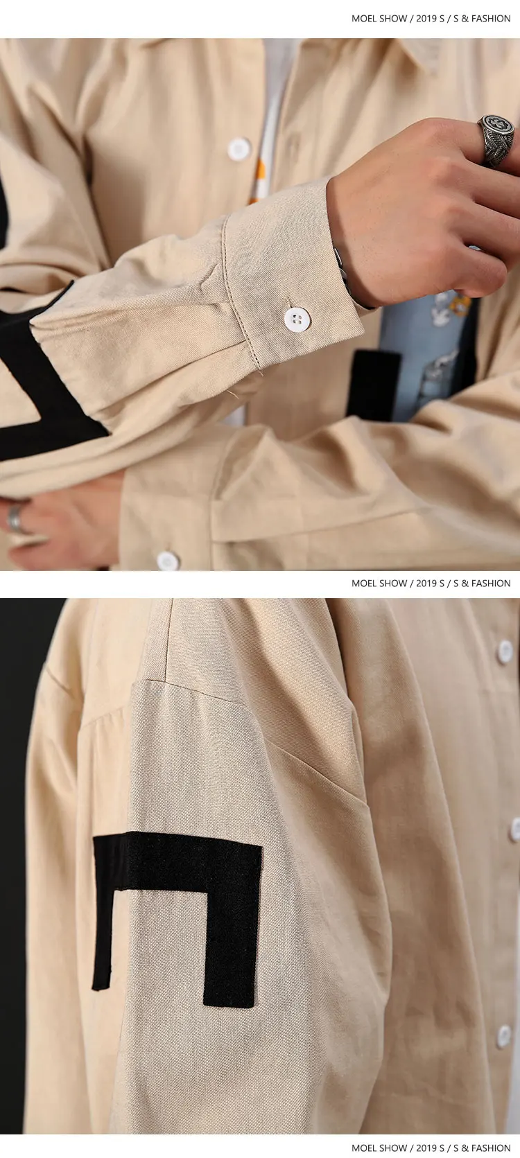 Мужские футболки с длинным рукавом высокого качества 2021 свободного покроя; Сезон весна-осень; Черного цвета в стиле хип-хоп Уличная одежда в Корейском стиле; Сезон осень; Повседневная брендовая рубашка оверсайз