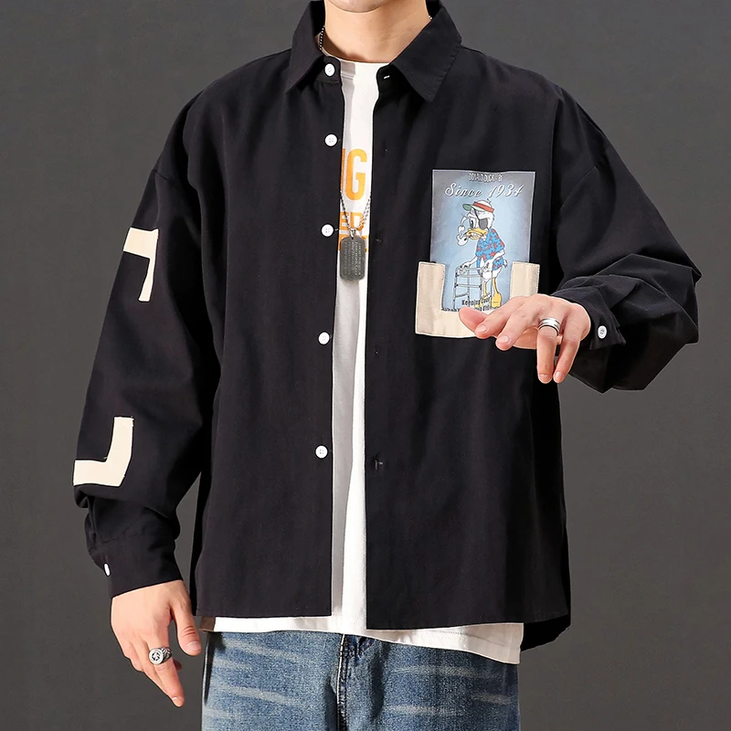 Рубашка мужская с длинным рукавом, уличная одежда в стиле хип-хоп, ...