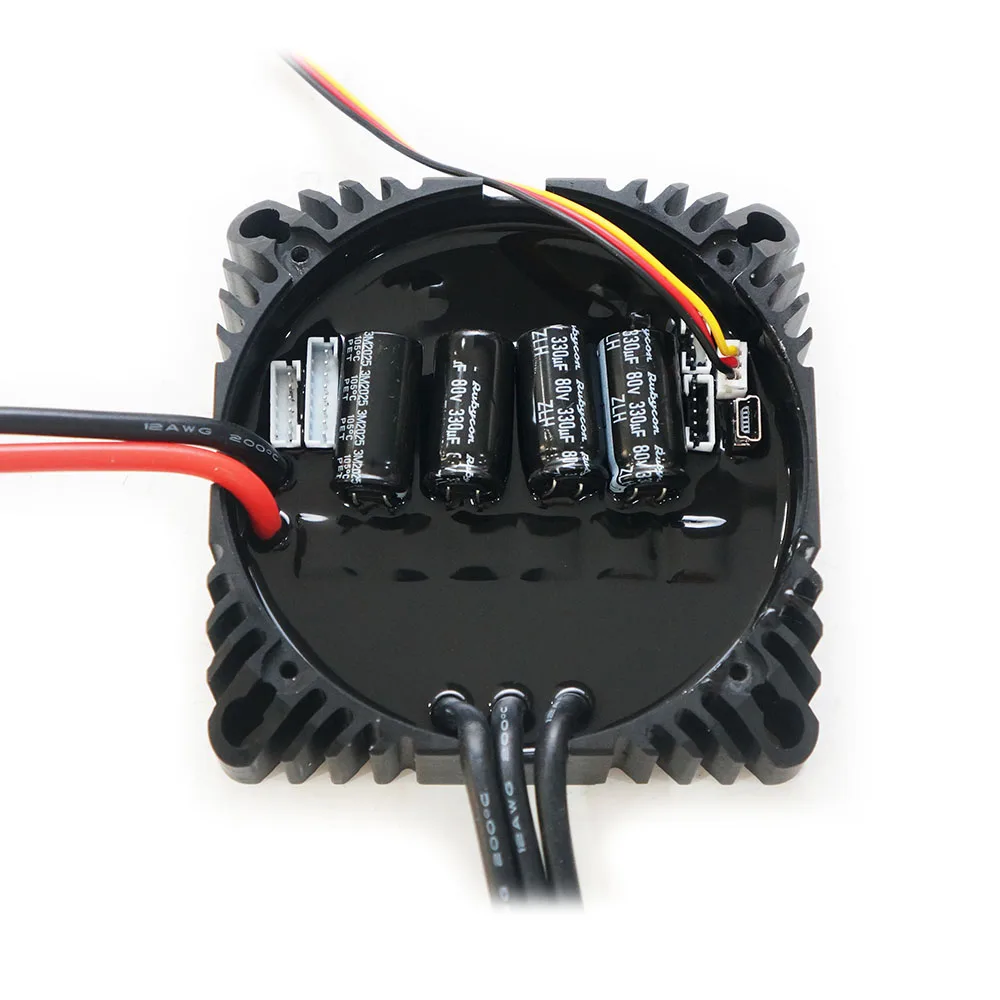 Стандартная версия-чехол без теплоотвода. В стандартной версии есть четыре отверстия для Крепления Винтов M3. В случае необходимости клиенты должны оснащаться теплоотводом, пыленепроницаемым и водонепроницаемым раствором при работе в условиях высокого тока. Рекомендуется прикрепить нижнюю поверхность ESC (поверхность без компонентов) к теплоотводу. Тем не менее, светильник индикатора на ESC находится на поверхности, свободной от компонентов, поэтому клиентам необходимо рассмотреть светильник, направляющий светильник.Во второй версии поставляется алюминиевый чехол с ЧПУ. Есть монтажные отверстия на чехол, и поверхностные компоненты могут быть заполнены клеем (по возможности, клиент может сделать это самостоятельно. Мы будем взимать плату за это, если мы сделаем водонепроницаемую обработку). Все компоненты, Кроме конденсаторов и штифтов, являются водонепроницаемыми IP66. Для водонепроницаемости штифтов заказчикам необходимо подтвердить, какие штифты должны быть подключены, и вынуть штифты, которые не подключены. В светодиодный индикатор размещен на его боковой части чехол.