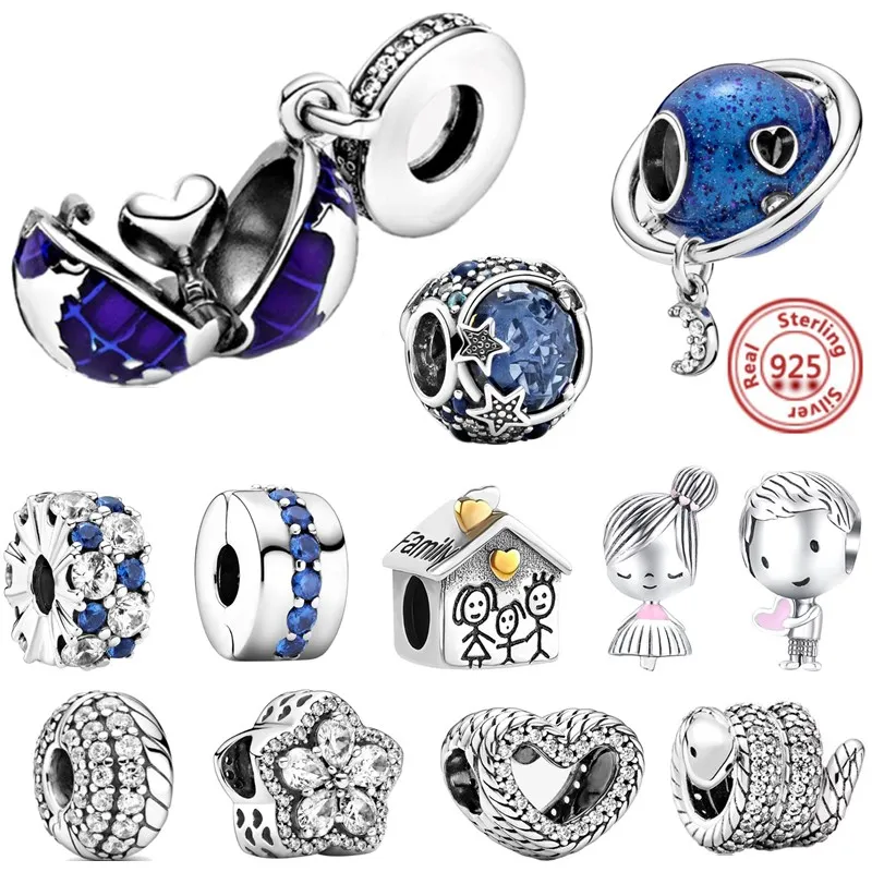 Новинка 2022, подвеска в виде синей планеты, семейный Шарм для мальчиков и девочек, оригинальный браслет Pandora, женские Украшения сделай сам, 100%