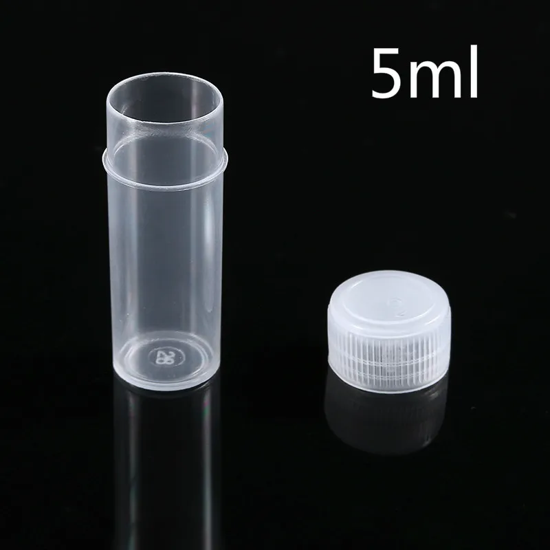 Пластиковые пробирки объемом 5 мл, 100 шт., флаконы, контейнер для образцов, флаконы с винтовой крышкой для порошка, лабораторные принадлежности для школы и офиса.