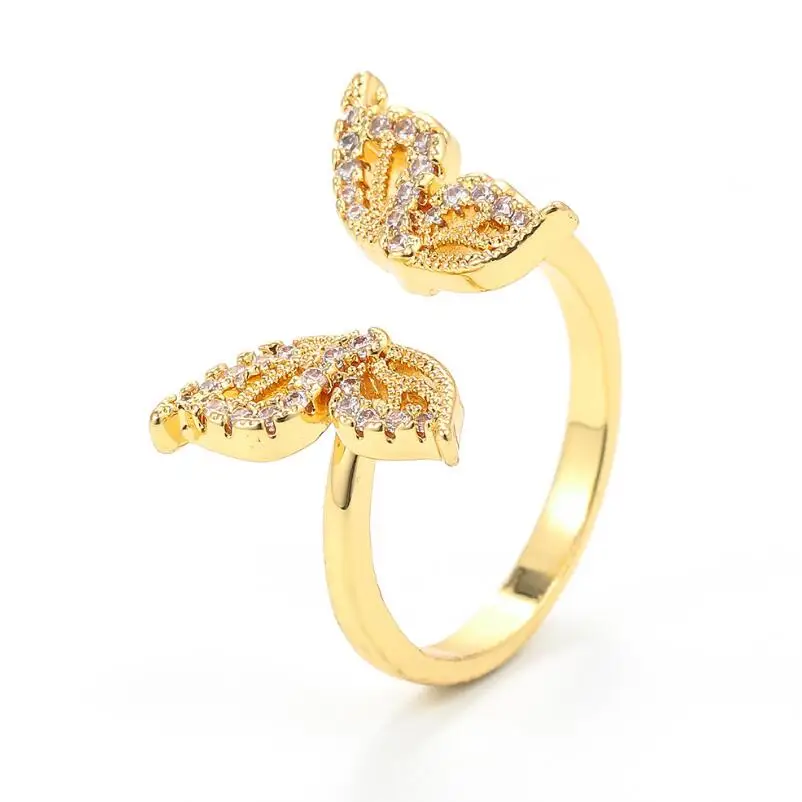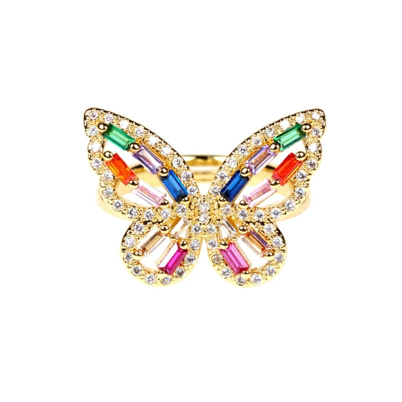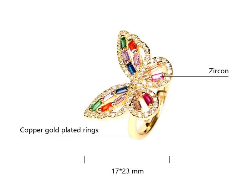 Кольца регулируемые с кристаллами женские, роскошное Открытое кольцо с радужными бабочками, Свадебная и вечерняя бижутерия, Подарочная бижутерия, 2021