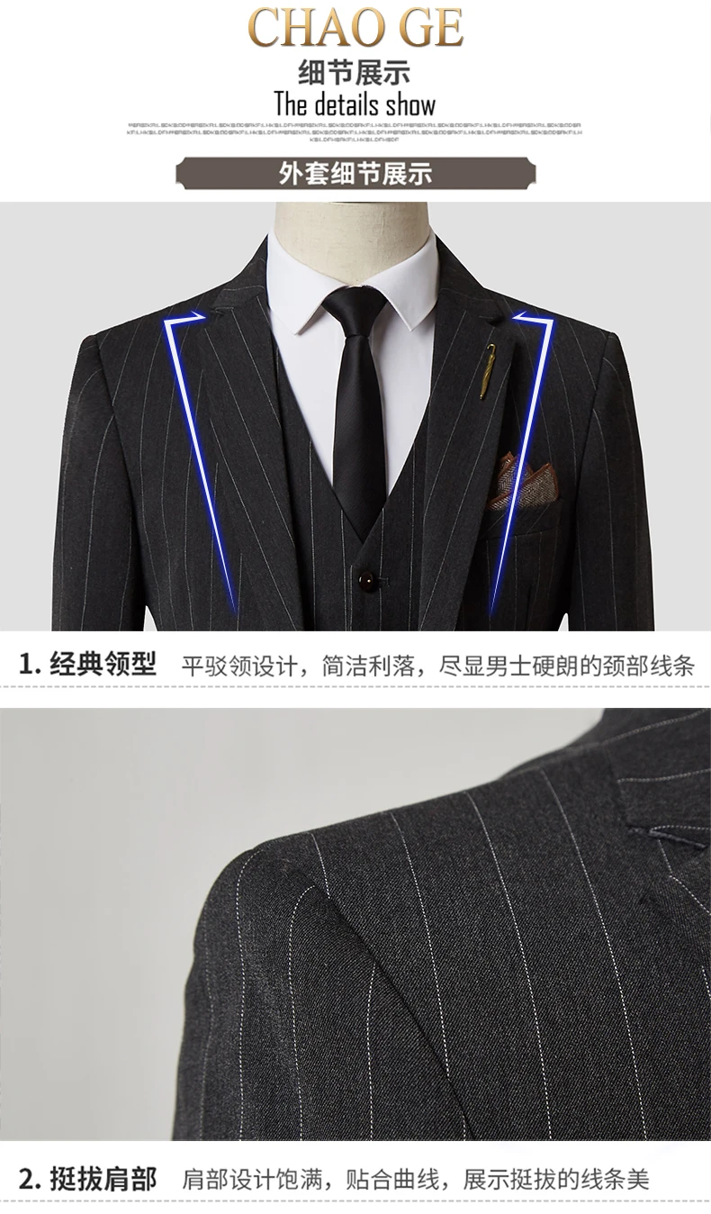 Костюм для жениха свадебный из трех предметов модный мужской пиджак на одной пуговице в британском стиле в полоску брюки жилет высококачественный комплект больших приталенных блейзеров
