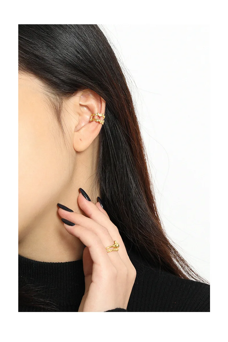 Шанис S925 пробы Серебряная Ушная манжета Клип серьги INS нишу дизайн нерегулярные волна Текстура Earcuff ювелирное изделие псевдо пирсинг зажимы