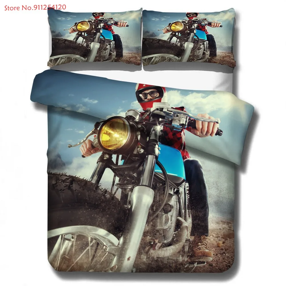 Пододеяльник для мотоцикла, наволочка одинарная двойная полная набор постельного белья Queen King комплектов, 2/3 шт., пододеяльник для мотогонок, комплект для подростков