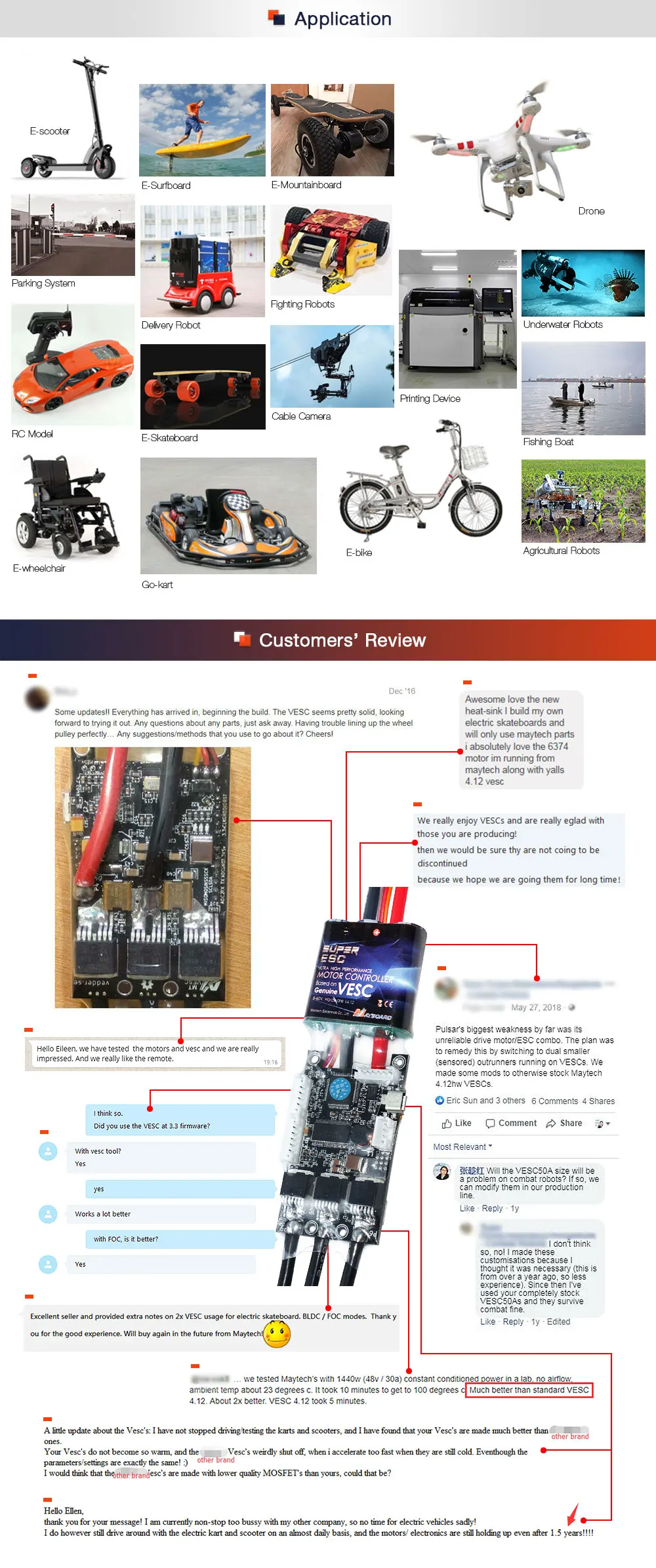ApplicationEsk8, Mountainboard, Fighting Robots, E-bike, E-scooter, etc.,