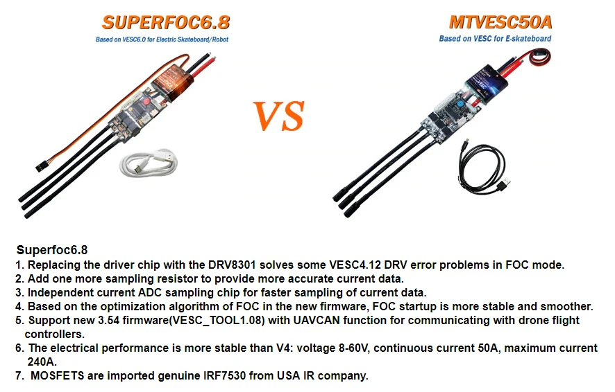 Maytech SUPERFOC6.8 50A V6 контроллер на основе Отличная функция FOC для Esk8/роботов/E-bike VESC_TOOL совместимый ESC