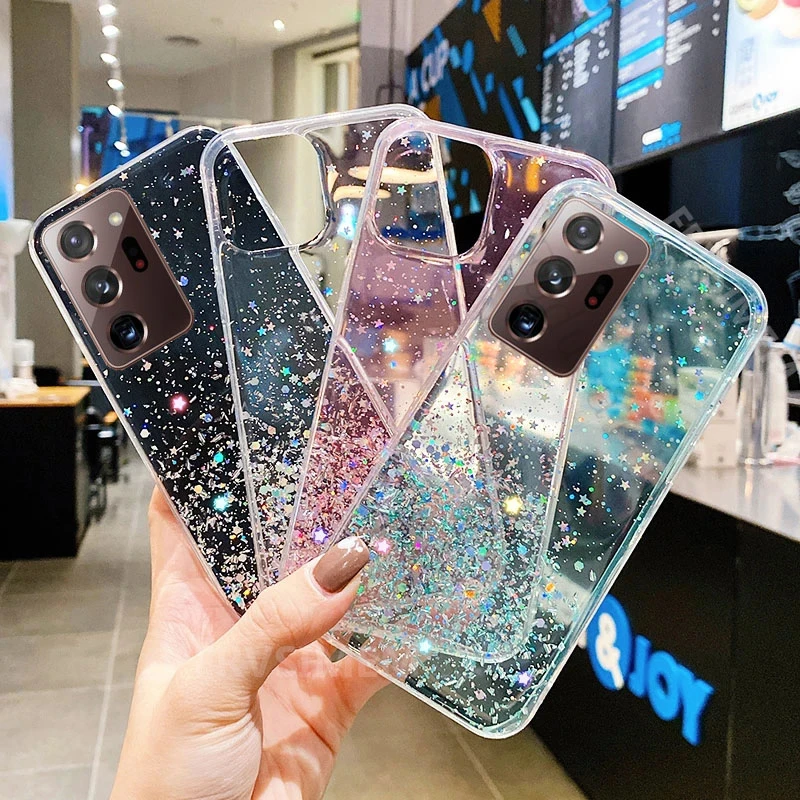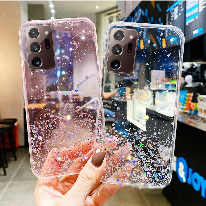 Прозрачный блестящий чехол со звездами для Samsung Galaxy S21 A50 A...