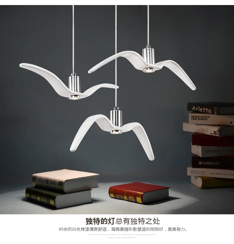 Скандинавская Подвесная лампа в виде чайки, дизайнерские светодиодные люстры для бара, кухни, люстра с птицами, потолочный светильник, осветительный прибор