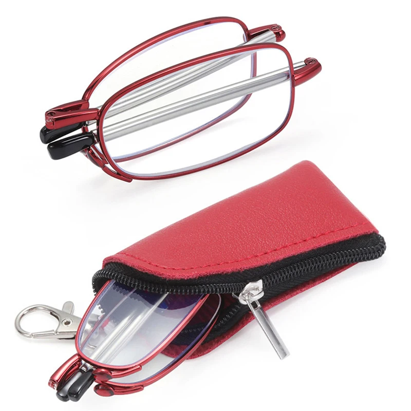 Очки для чтения складные при пресбиопии, компактные аксессуары с защитой от синего света, с пружинными шарнирами и брелоком