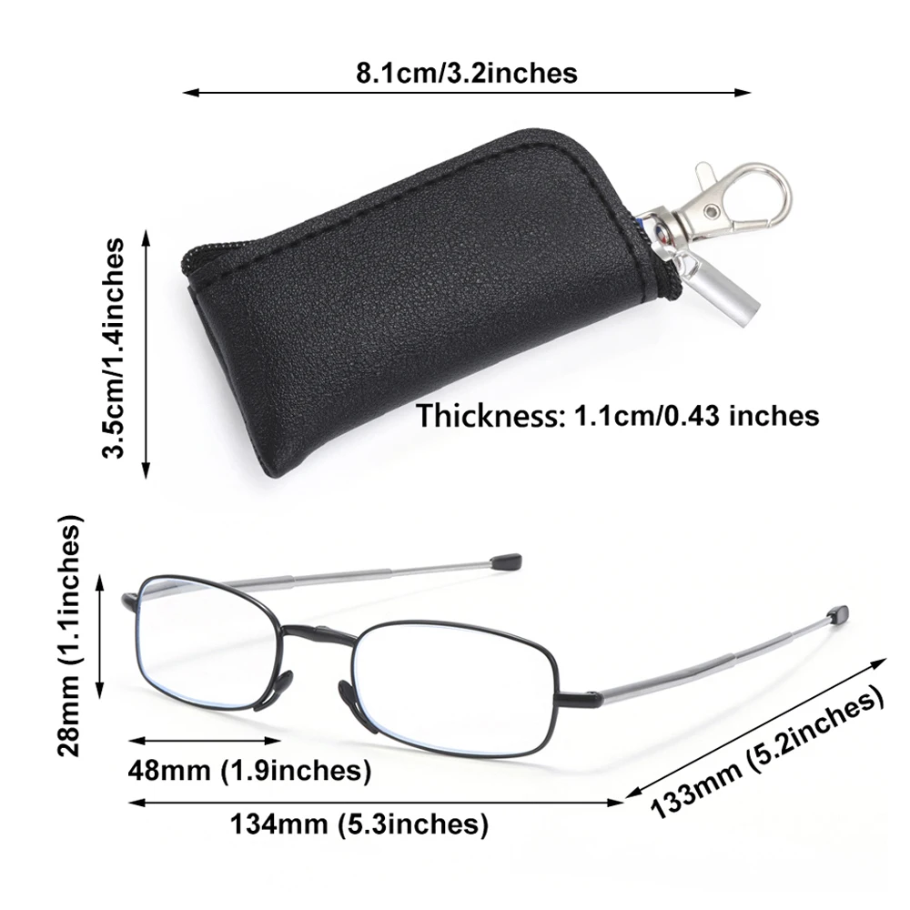 * Компактная складная конструкция-Складной мост и телескопические дужки для удобного складывания и компактного хранения. Рамка и телескопические дужки складываются в крошечный чехол для брелока. * Размер изделия-ширина оправы: 5,3 дюйма, ширина линз: 1,9 дюйма, высота линз: 1,1 дюйма, длина дужек: 5,2 дюйма, Чехол для очков: 3,2x1,4x0,43 дюйма. * Портативный чехол-брелок-Flip top hard PORTABLE CASE s достаточно мал, чтобы поместиться практически в любом месте-ваш карман, кошелек и тоут или сумка на руку. Посылка: очки для чтения голубого цвета с брелоком-Чехол-1 шт.