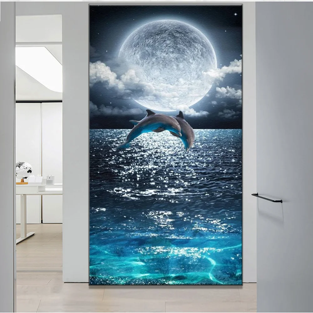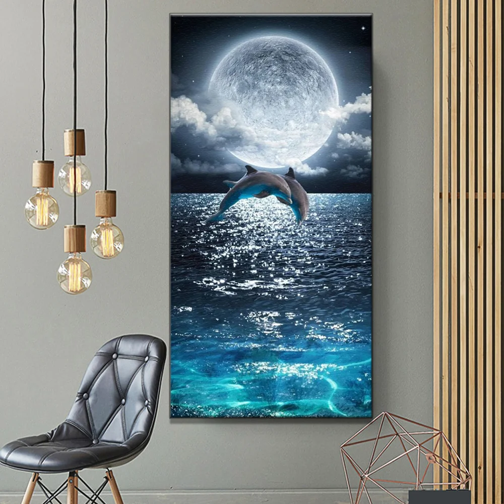 Большой 5d DIY Краски Diamond яркая луна Алмазная вышивка прыжки Дельфин полный квадратные Стразы мозаичная декоративная картина Краски ing Декор