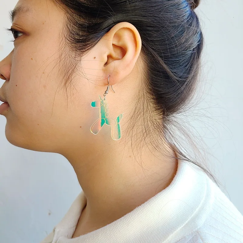 Симпатичные акриловые серьги с лазерным воздушным шаром, пуделем, собакой, женские забавные Светоотражающие серьги-капельки в виде животных, шаров, лошадей, подарки