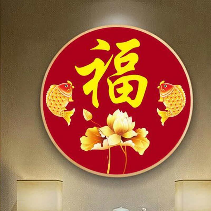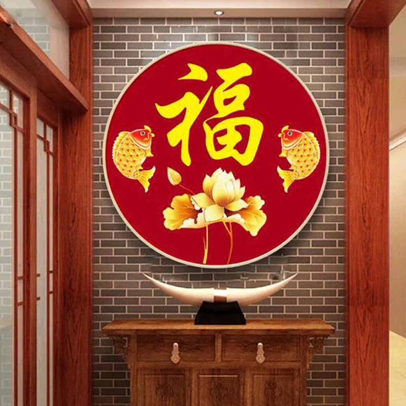 Алмазная вышивка, китайский иероглиф "фу", двойной карп, рыба, Китайская красная, каллиграфия, полная, вышивка крестом