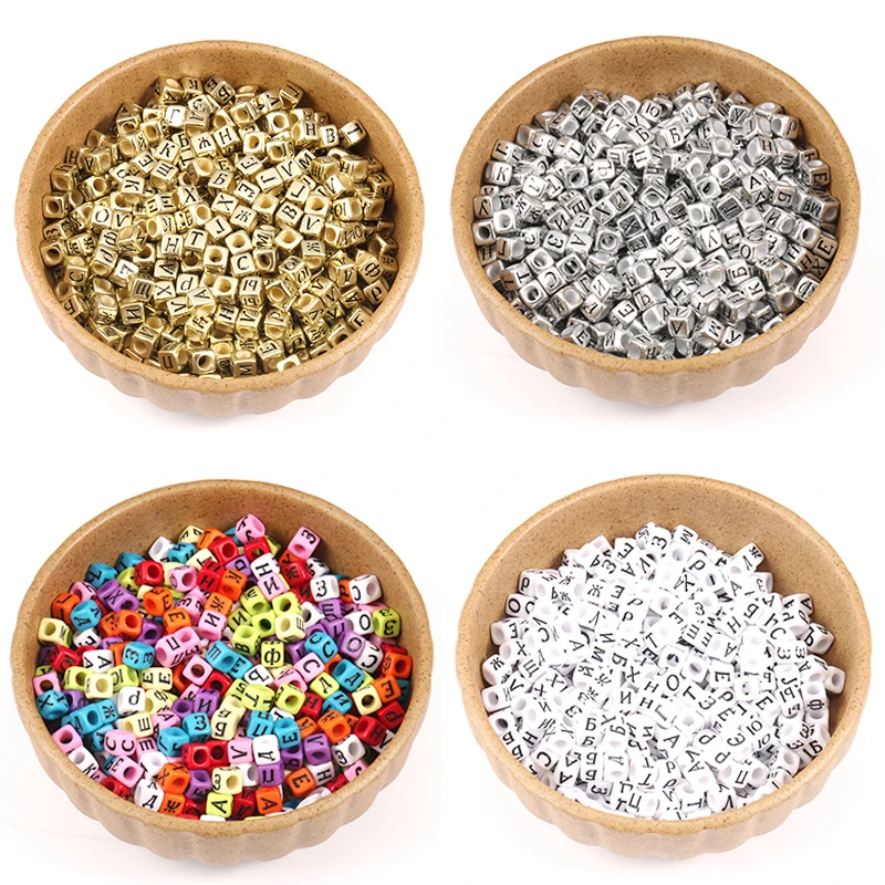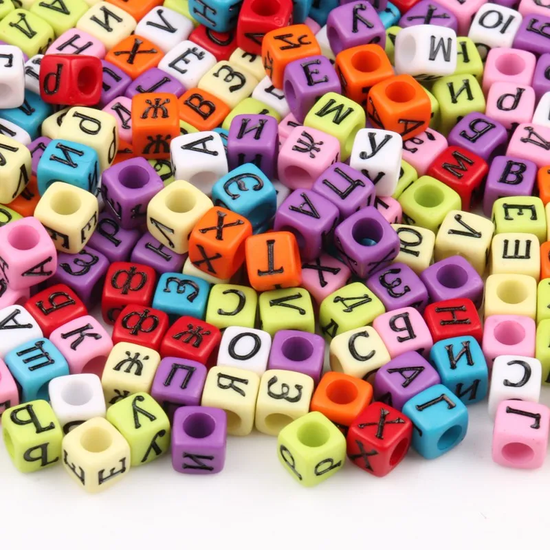 6*6 мм Смешанные квадратные акриловые бусины с русскими буквами кубик алфавита бусины россыпью с отверстием для браслетов и ожерелий