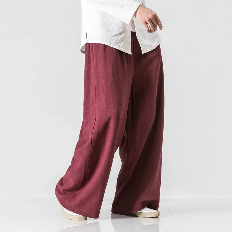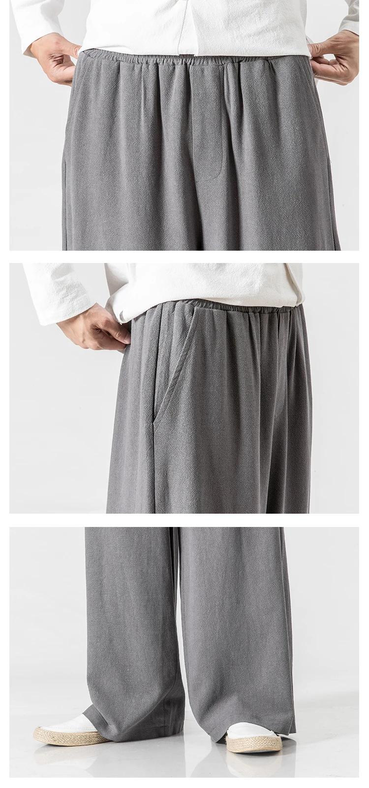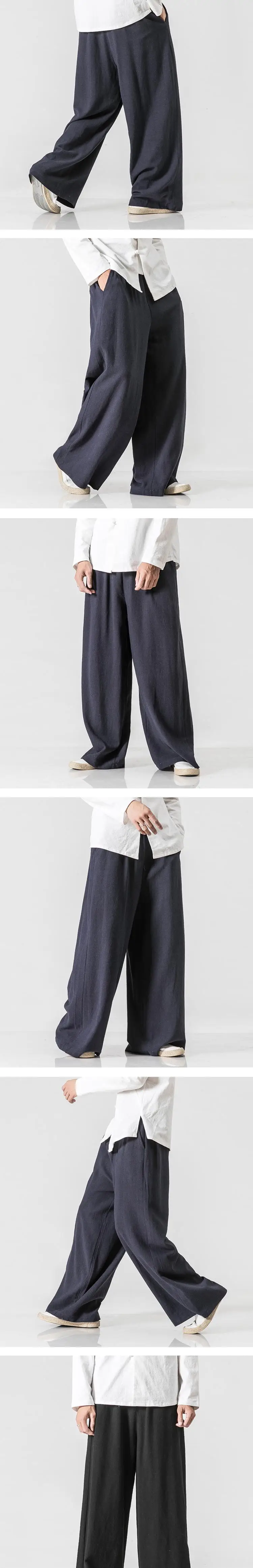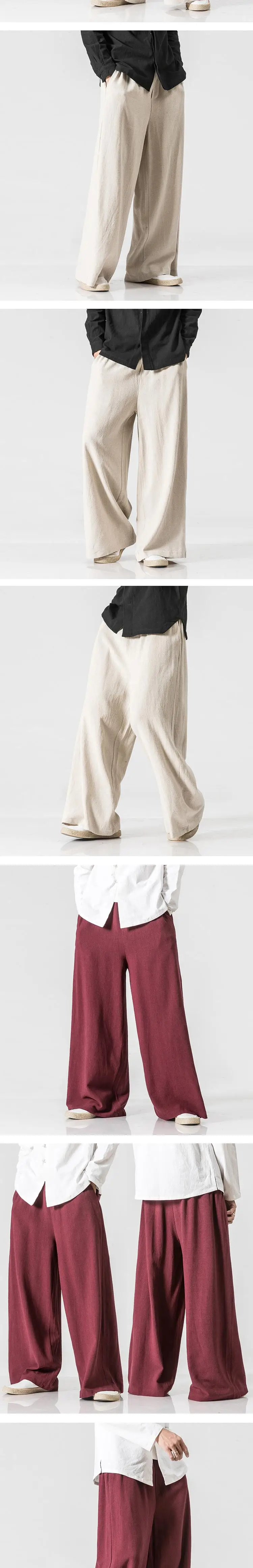 Мужские повседневные однотонные прямые свободные брюки, размера плюс, панталоны с широкими штанинами Hombre, мужские мешковатые брюки из натурального хлопка и льна
