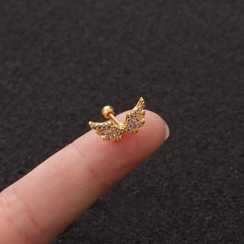 Серьги-гвоздики золотые для ушей, набор для пирсинга на хрящевой ос...