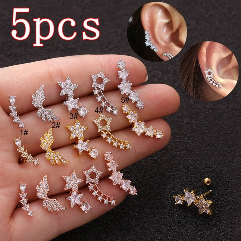 5 шт. сережки спиральный для хряща кольцо в форме раковины Rook козелка Лабрет, украшение для пирсинга перегородки носа крыло со звездой серьги шпильки для пирсинга набор, ювелирное изделие для тела, P105