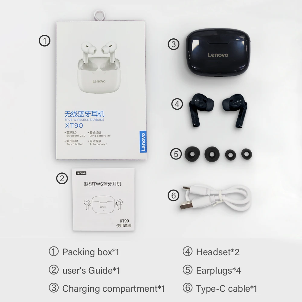 TWS-наушники Lenovo XT90 с поддержкой Bluetooth 5,0 и сенсорной кнопкой