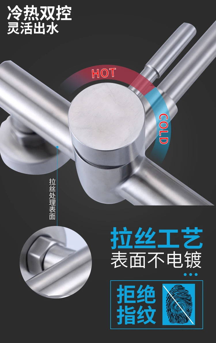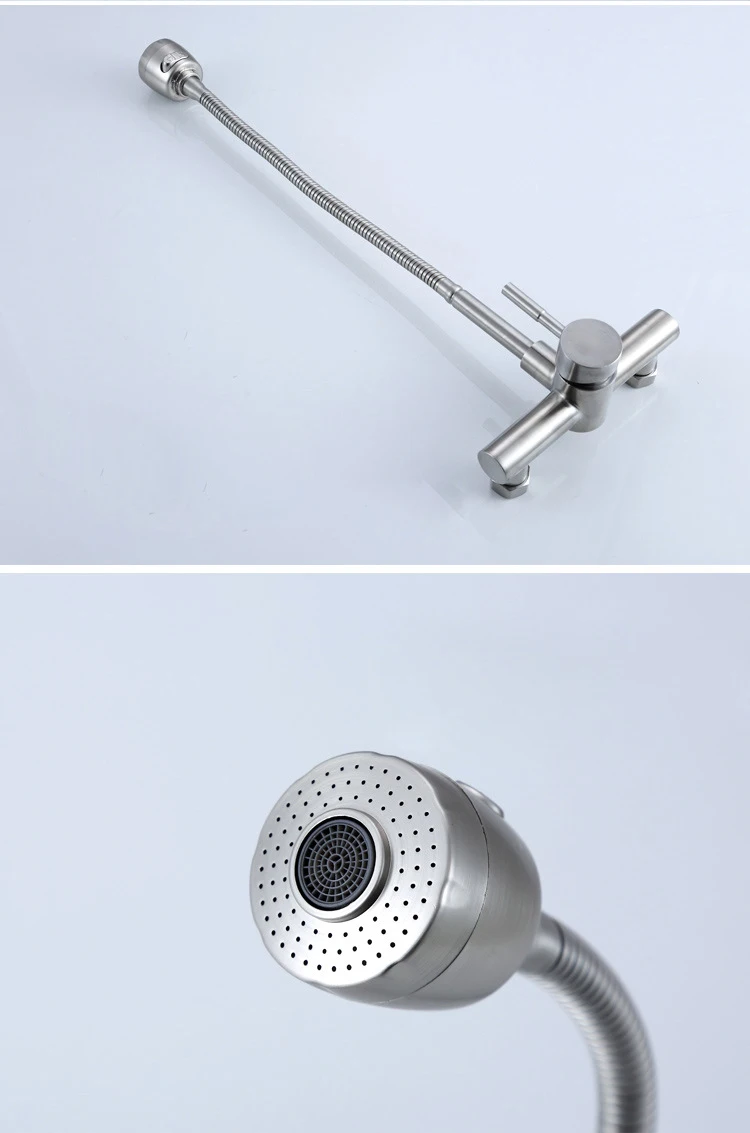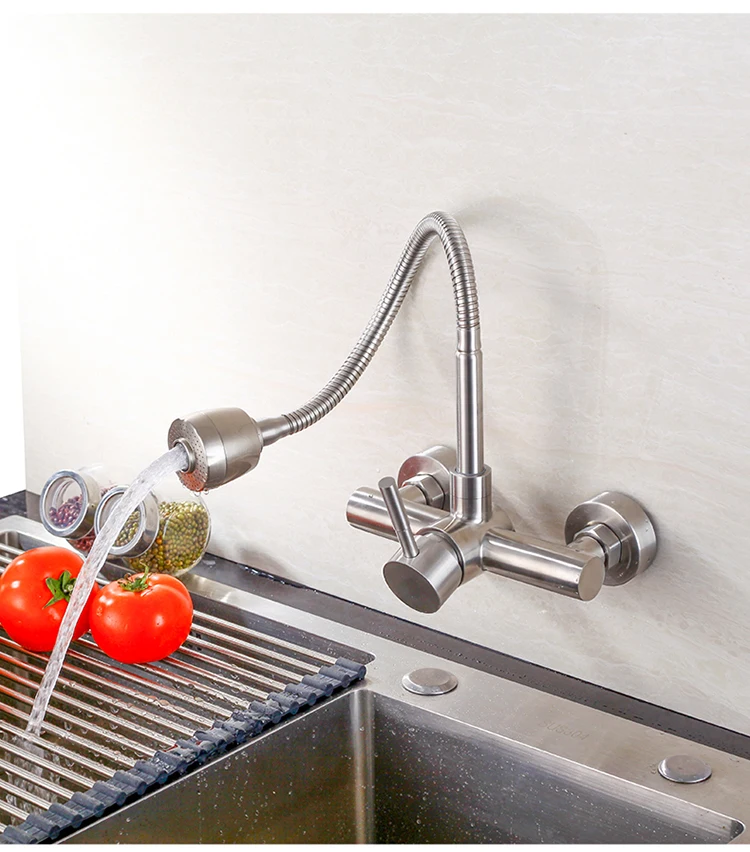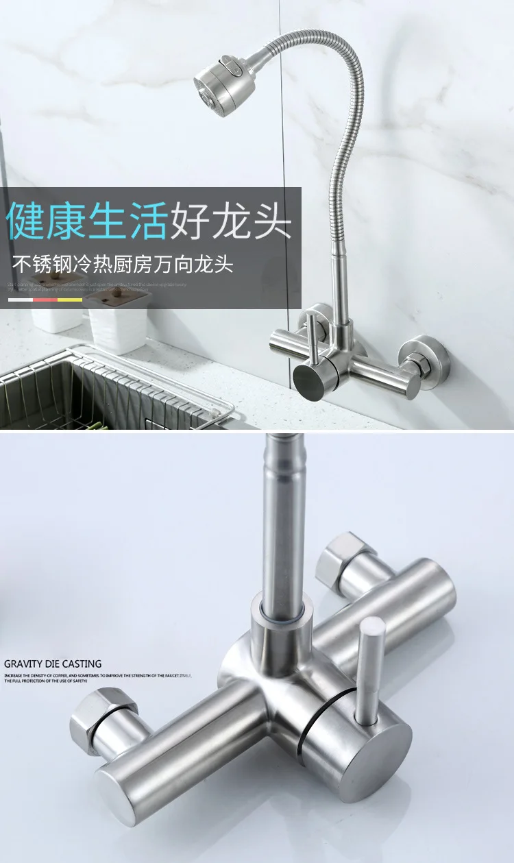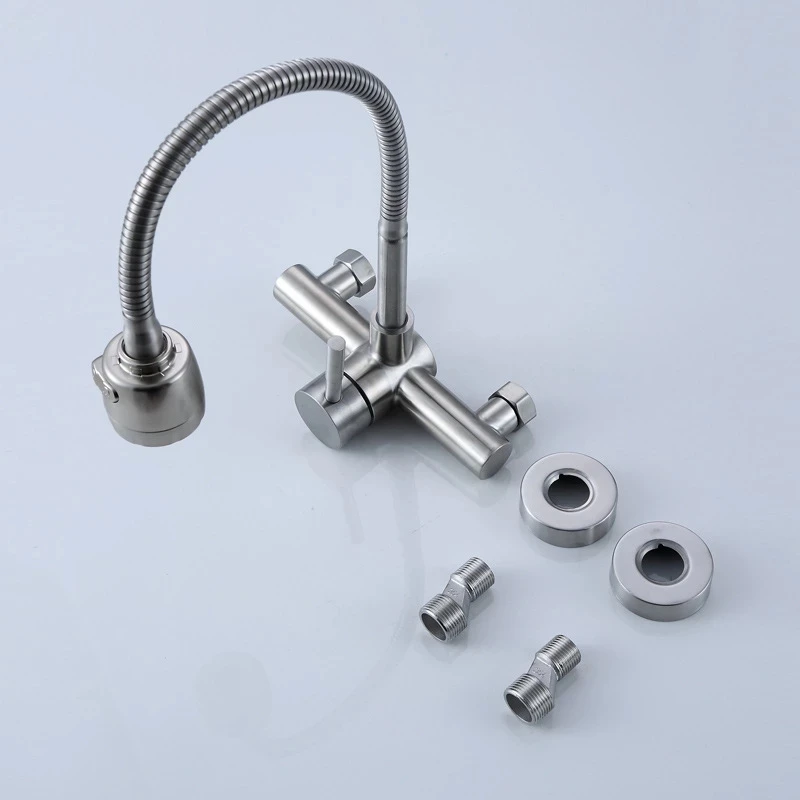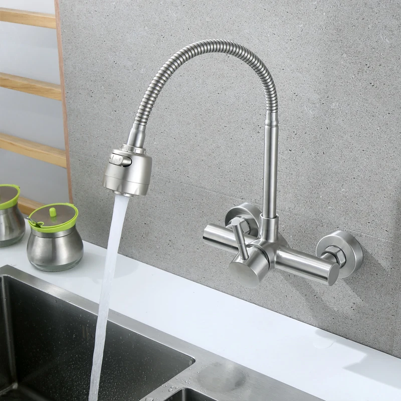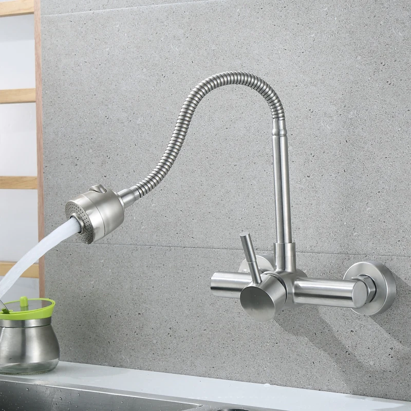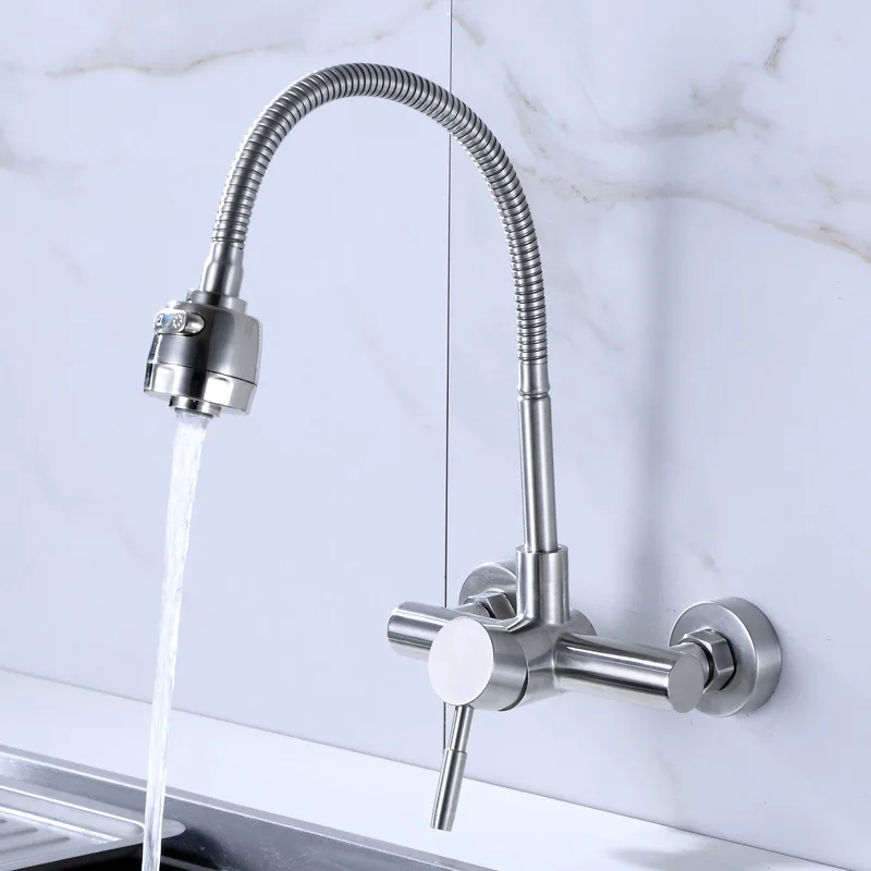 Настенный смеситель из нержавеющей стали SUS 304, кухонные смесители горячей и холодной воды, кран для раковины, поворот на 360 градусов, гибкий шланг