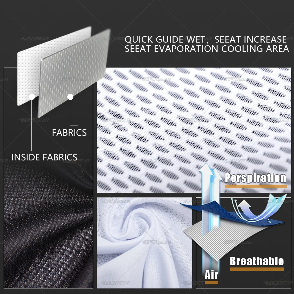 1. Легкие и быстросохнущие, дышащие. 2. Сторона из сетчатой ткани джерси. 2. Эластичная плотная ткань, больше подходит для занятий спортом 3. Одежда с противоскользящим поясом, больше подходит для занятий спортом.