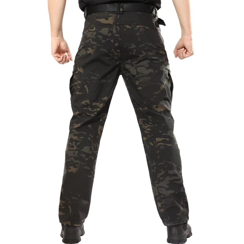 Мужские флисовые брюки, зимние, теплые, камуфляжные, ветрозащитные, водонепроницаемые, с мягкой оболочкой, военные, камуфляжные