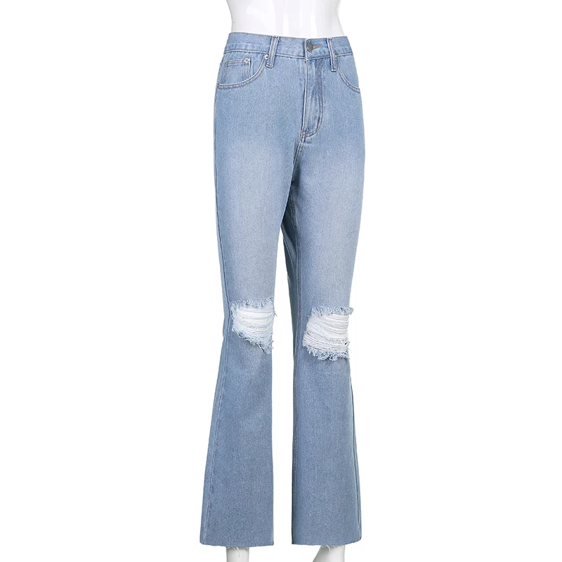 Узкие рваные джинсы IAMSURE для женщин, с высокой талией, Модные расклешенные брюки, повседневные широкие брюки, уличная одежда, 2021, Осень-зима