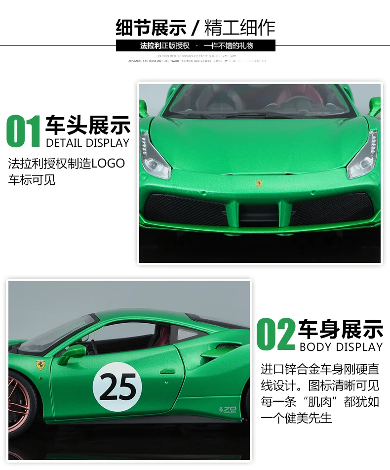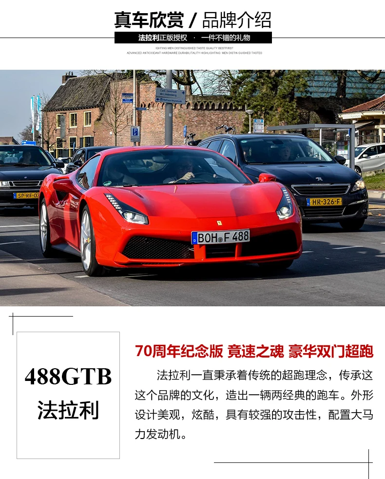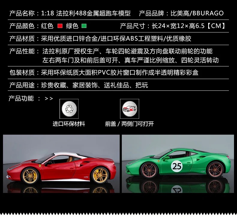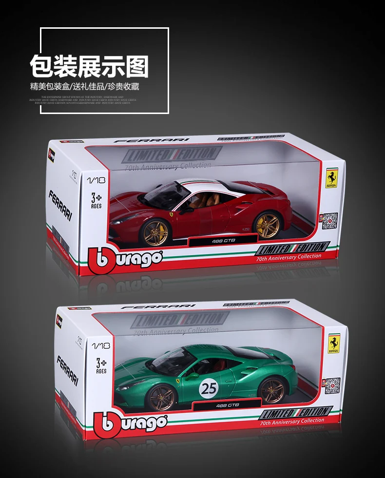 Модель автомобиля Bburago Ferrari 488GTB, масштаб 1:18, из сплава