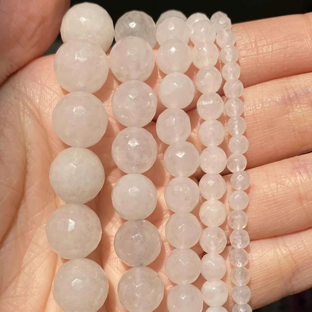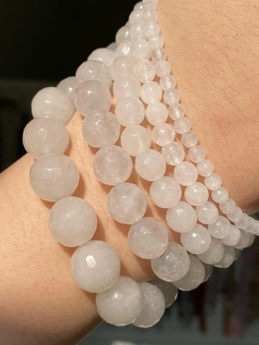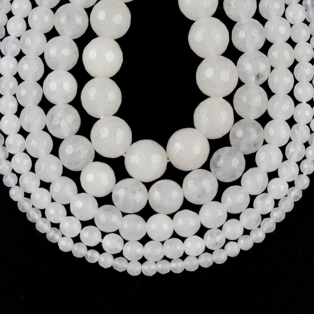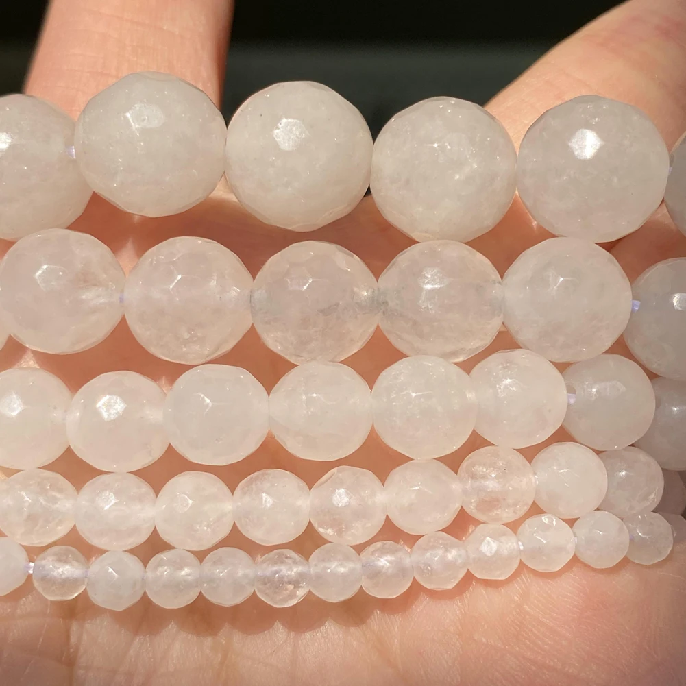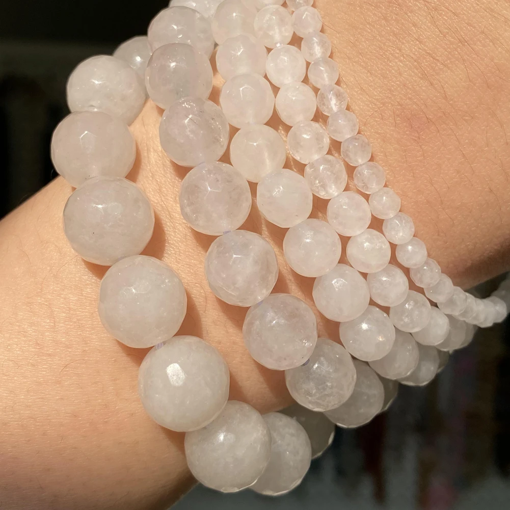 Натуральный белый граненый нефрит халцедон каменные бусы 4681012 мм круглые бусины для самостоятельного изготовления ювелирных изделий браслет ручной работы 15"