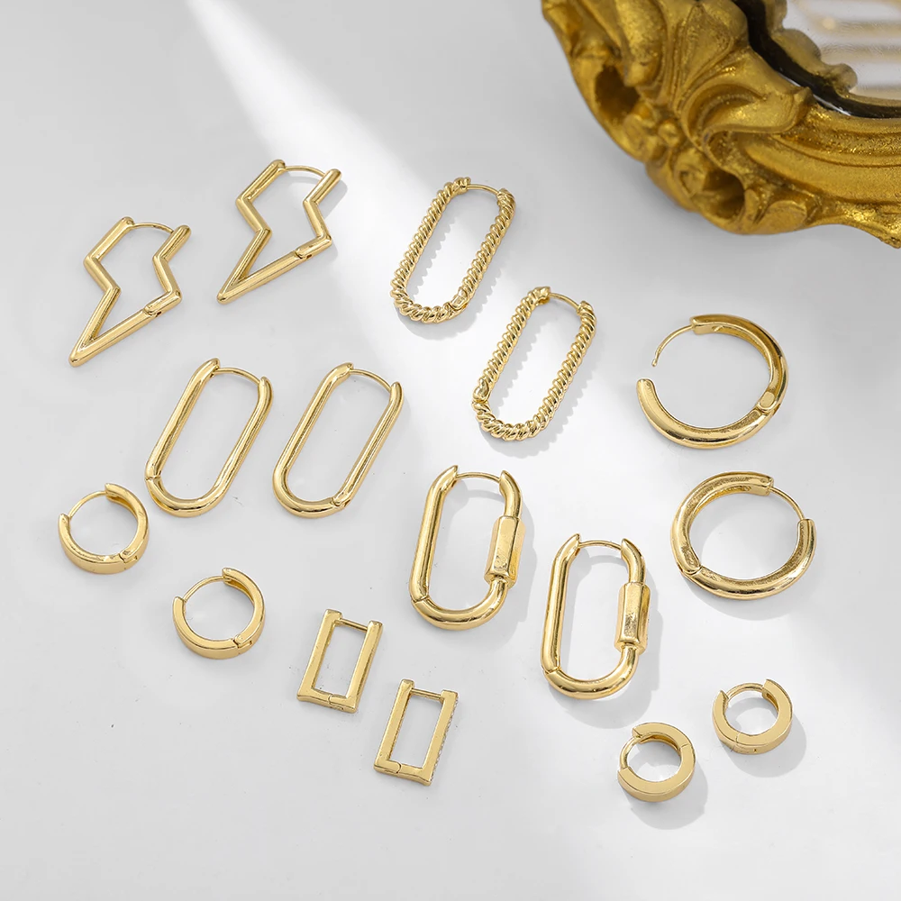 Серьги-кольца Huggie женские, минималистичные золотистые геометрические витые серьги-кольца простого небольшого и серьги в виде больших кругов цвета, бижутерия