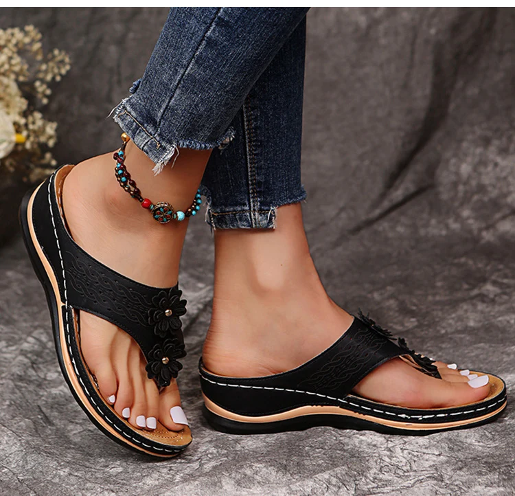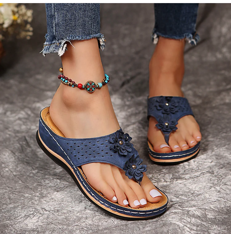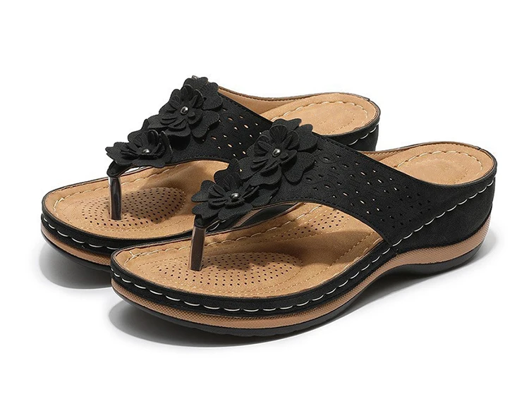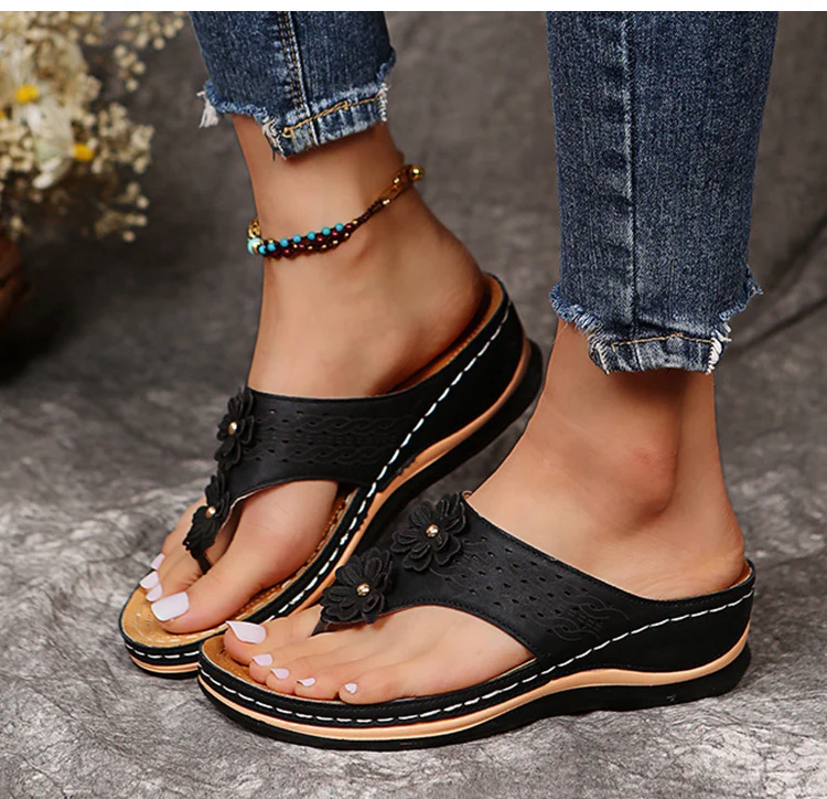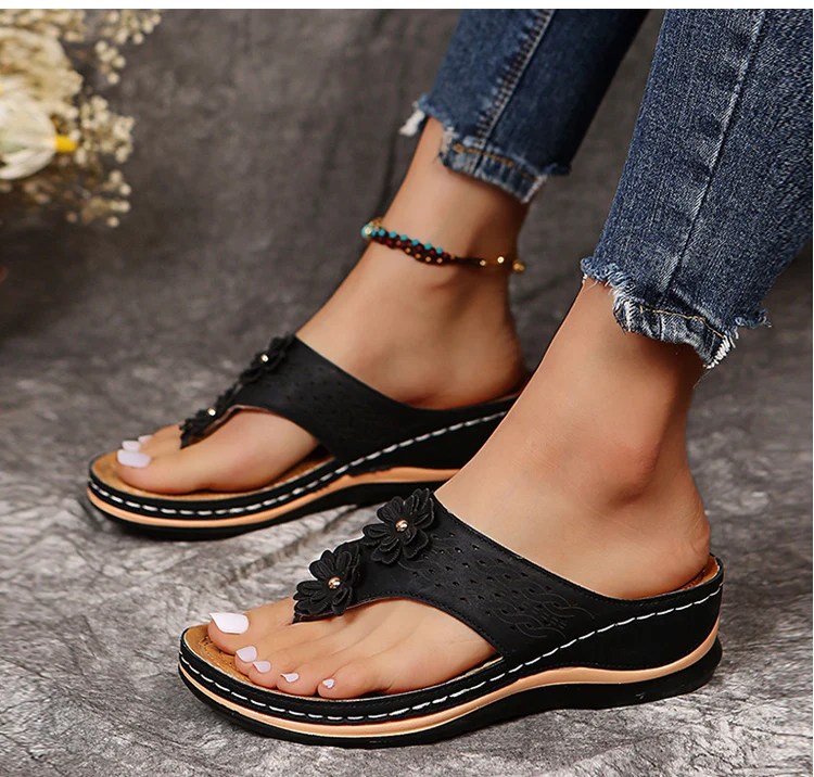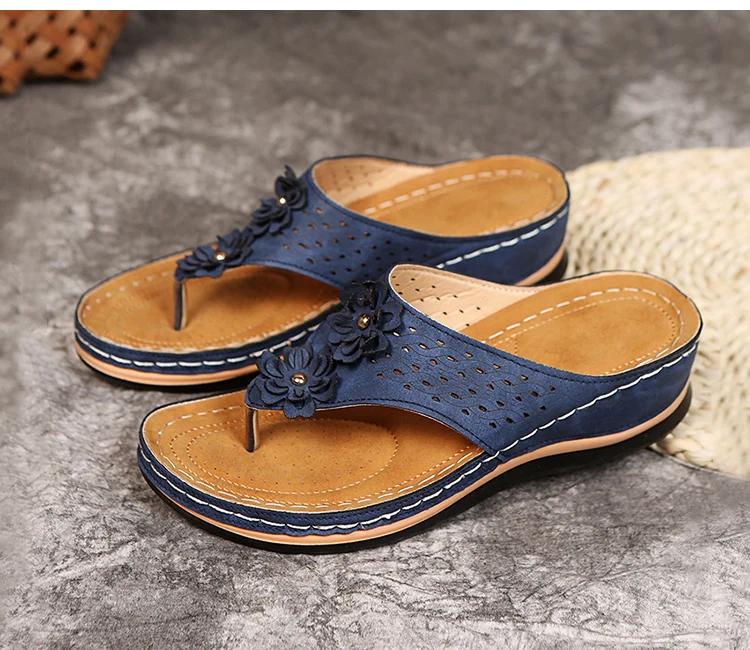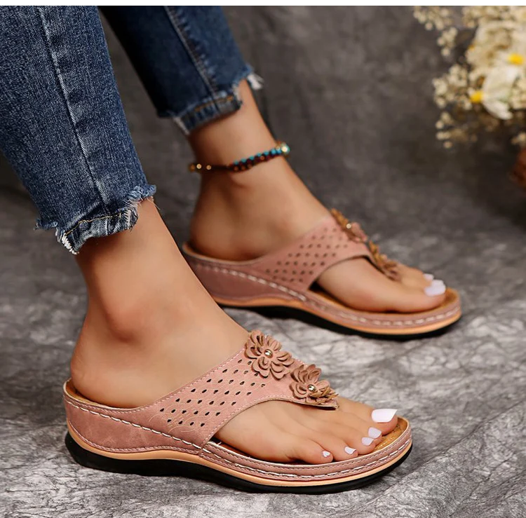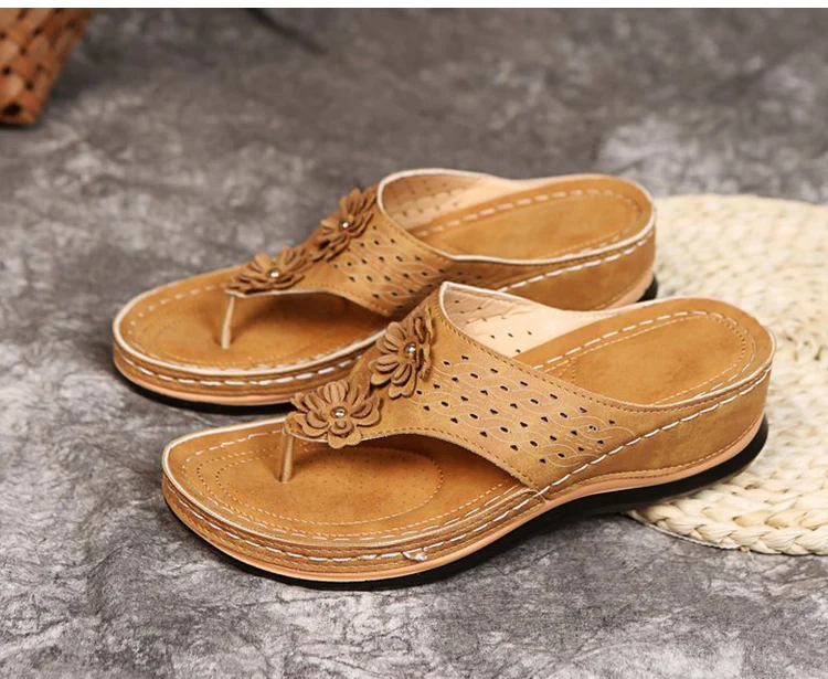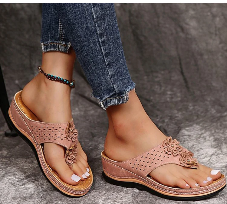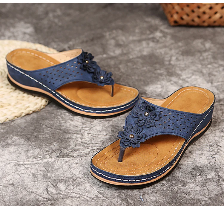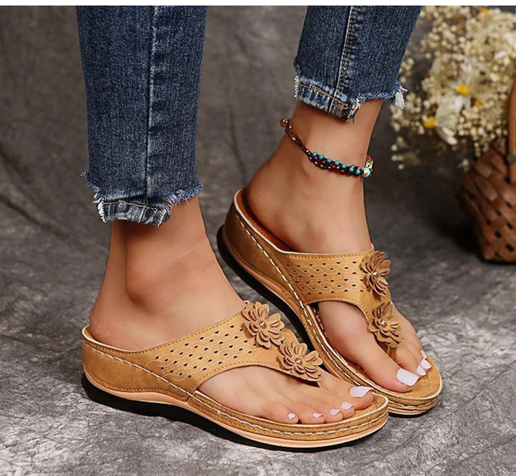 Женские босоножки; Туфли на танкетке с мягкой подошвой; Летние сандалии; Вьетнамки на каблуке; Босоножки на платформе с цветочным узором; Sandalias Mujer; Шлепанцы на танкетке