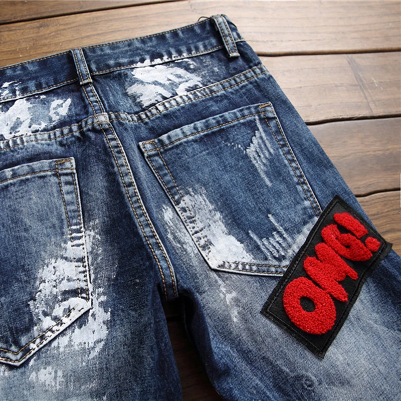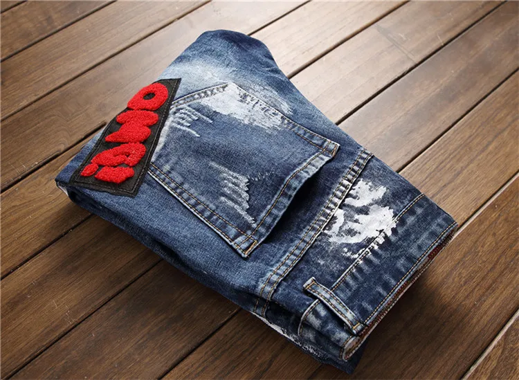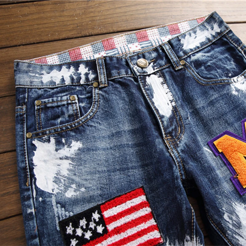 Новинка осенние стильные маленькие прямые джинсовые брюки с нашивкой с национальным флагом Модные мужские штаны для похудения
