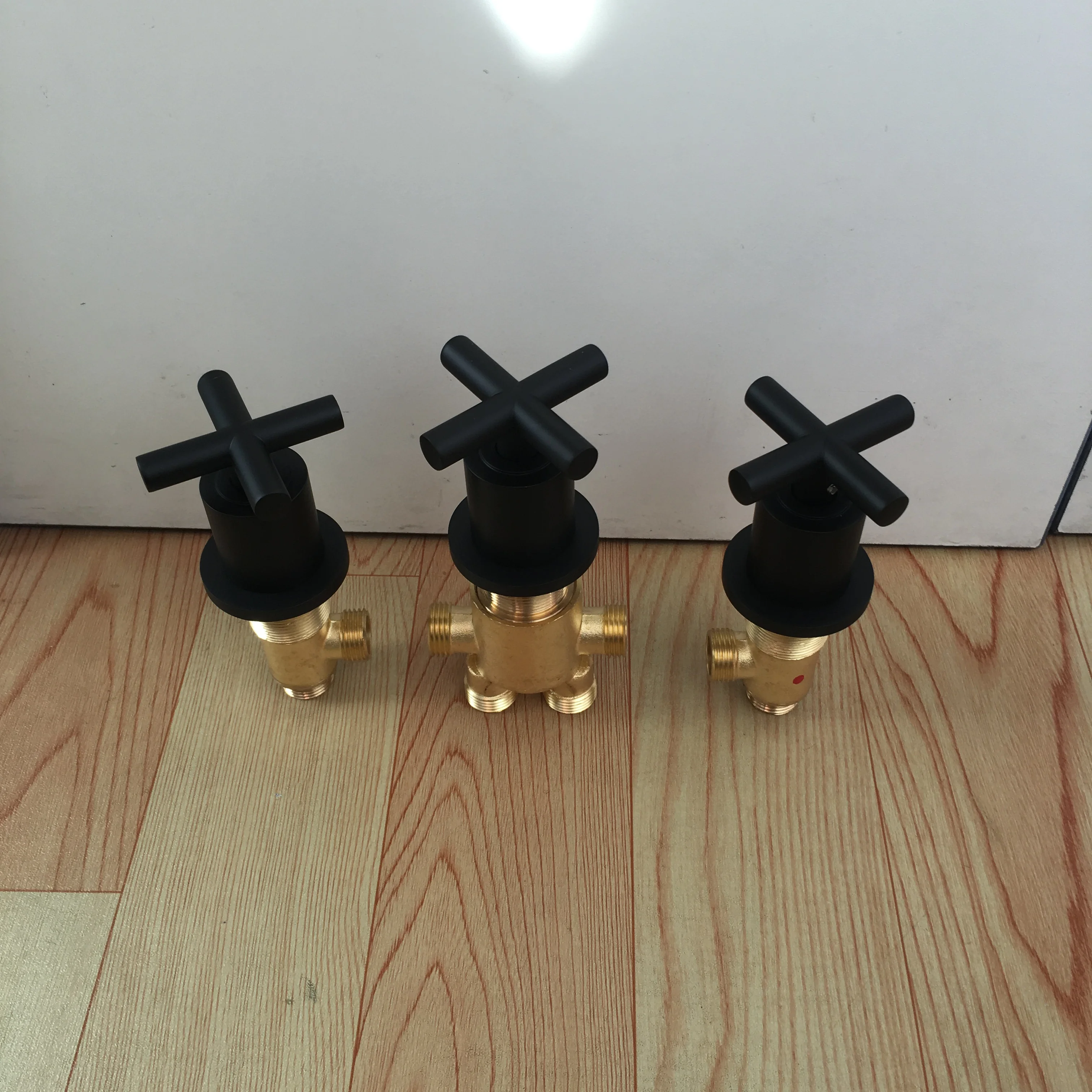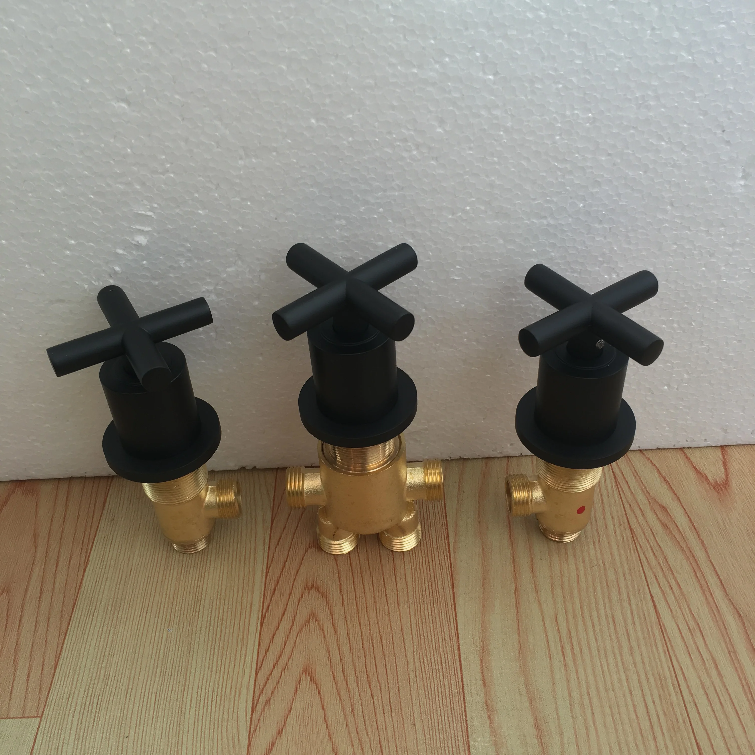 Матовый черный смеситель из твердой латуни с 5 отверстиями, контрольный клапан для ванны с горячей и холодной водой, аксессуары для крана ванны