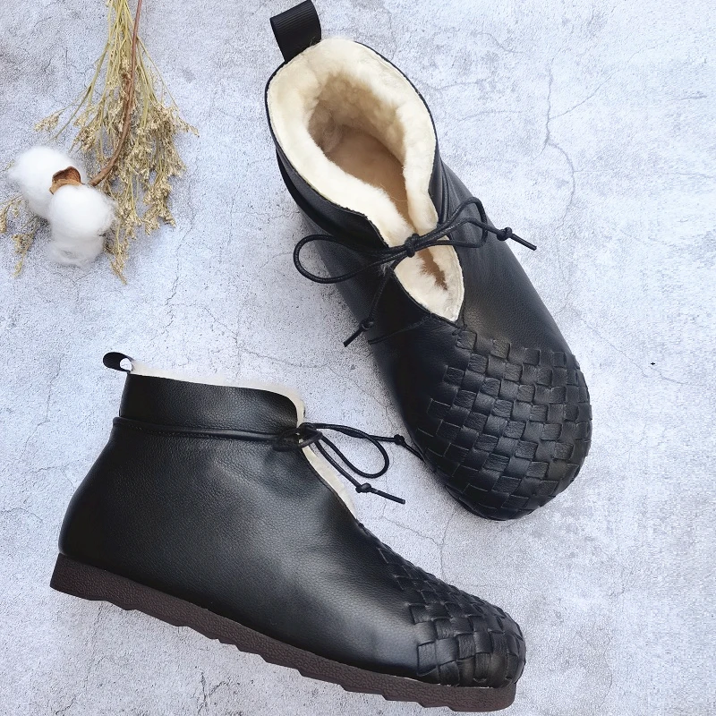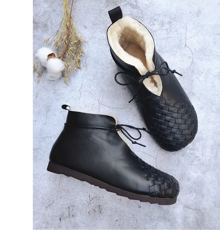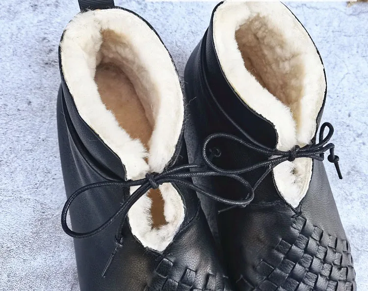 Женские ботинки, зимняя обувь для снежной погоды, теплые женские ботильоны из 100% натуральной кожи, женские ботинки без каблука