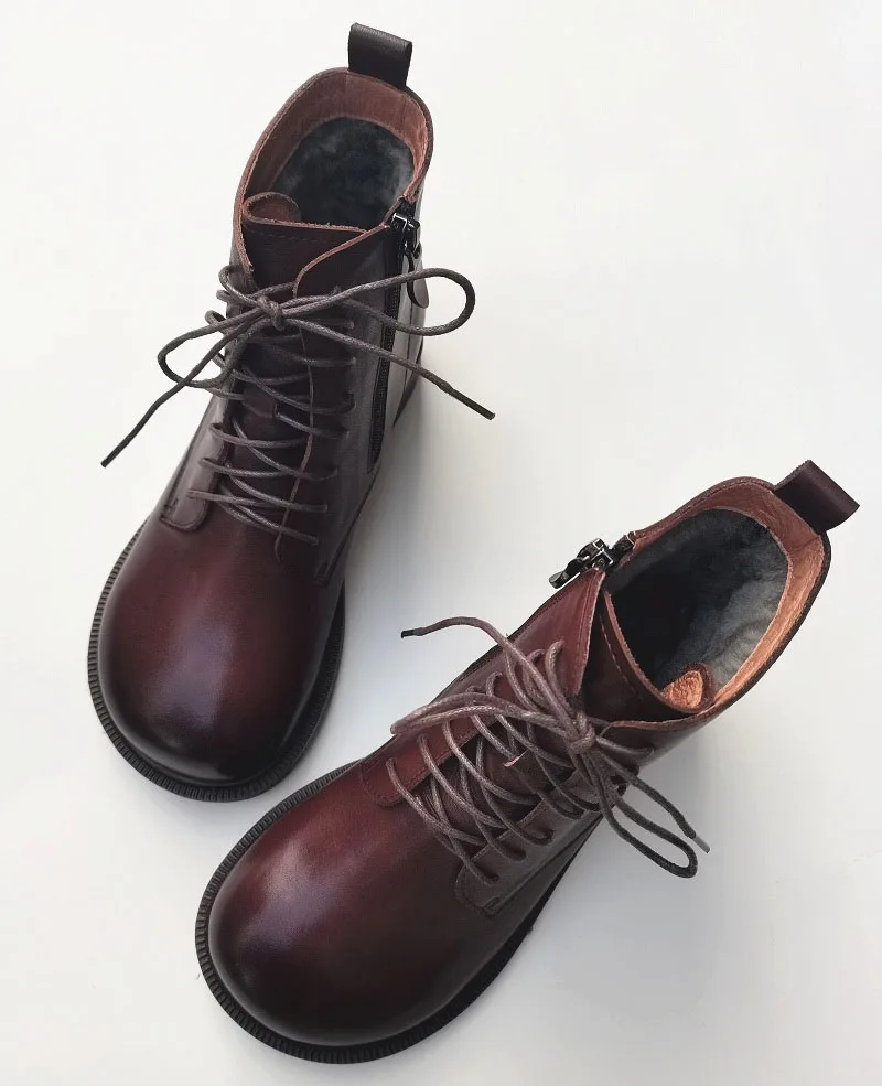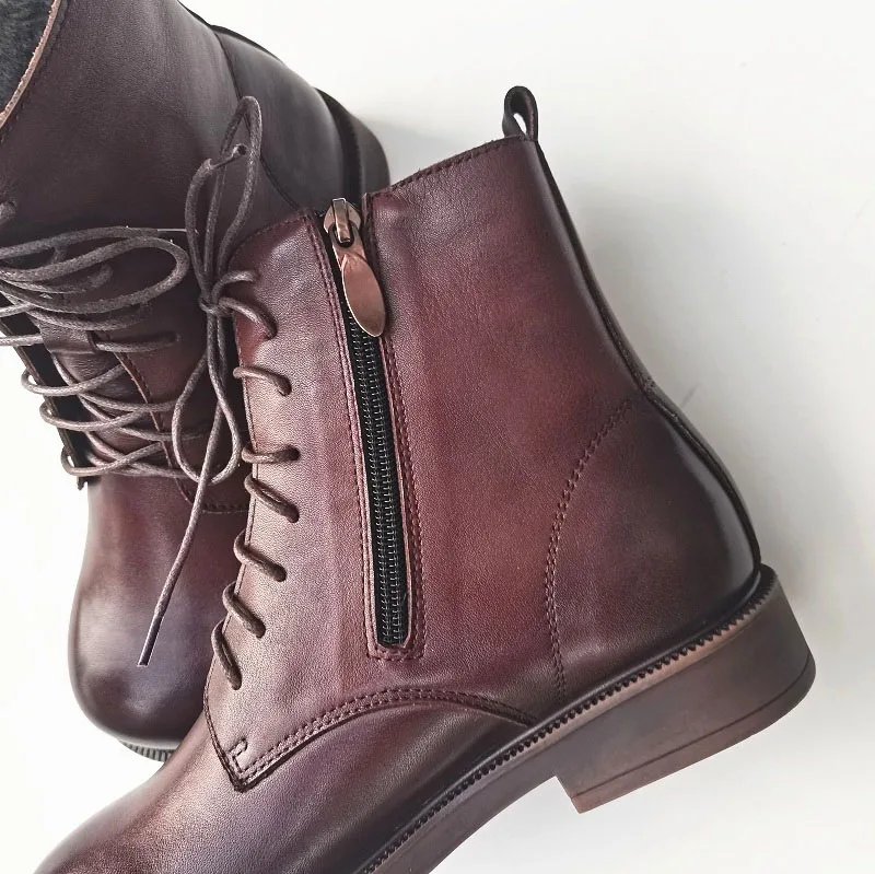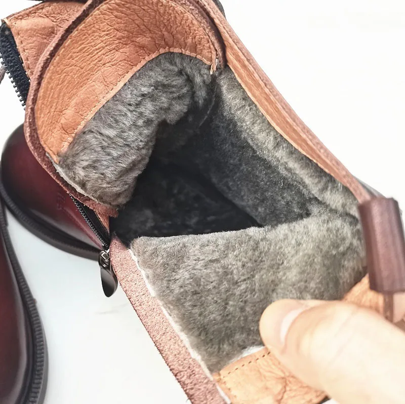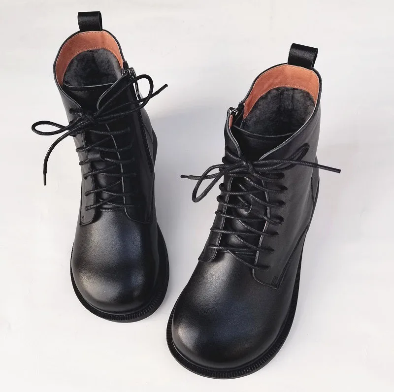 Ботинки женские из 100% натуральной кожи, на меху, с противоскользящей резиновой подошвой, теплые зимние пинетки