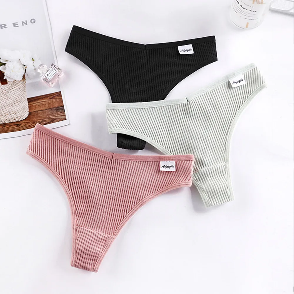 Стринги женские хлопковые однотонные, 3 шт.компл.