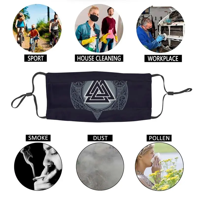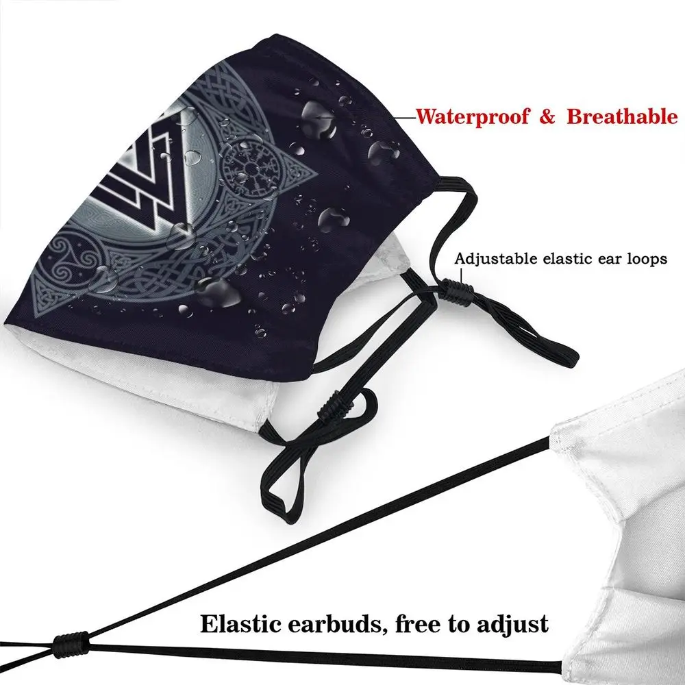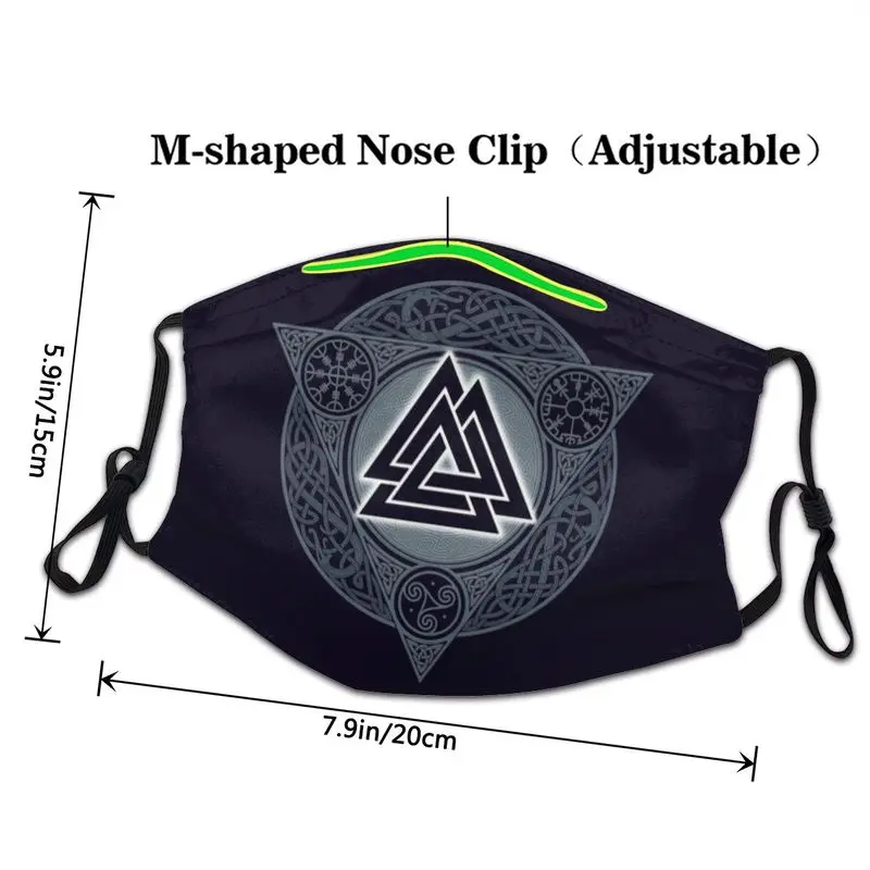 Valknut-многоразовая маска для лица для взрослых лед пламя принт Викинги против дымки пыли Защитная крышка респиратор многоразовый рот муфельная печь